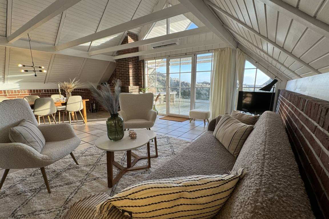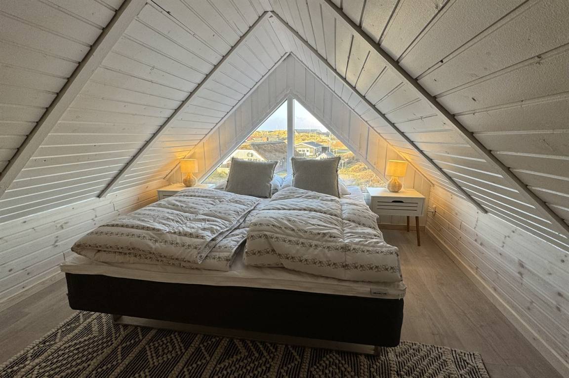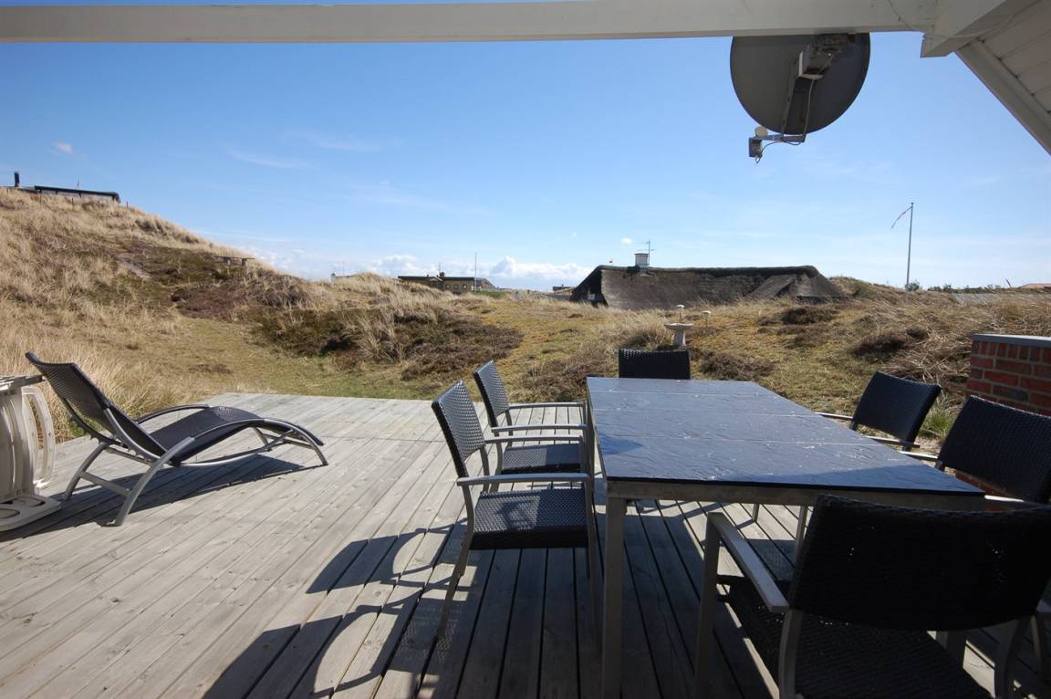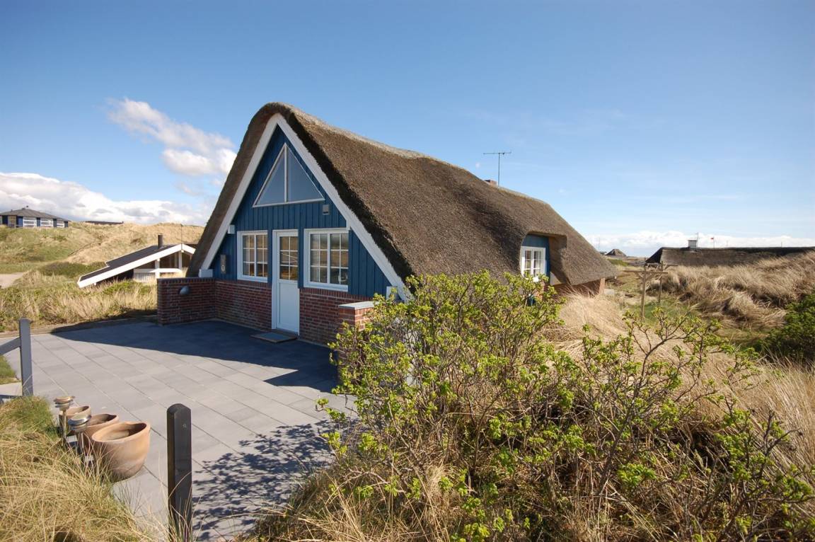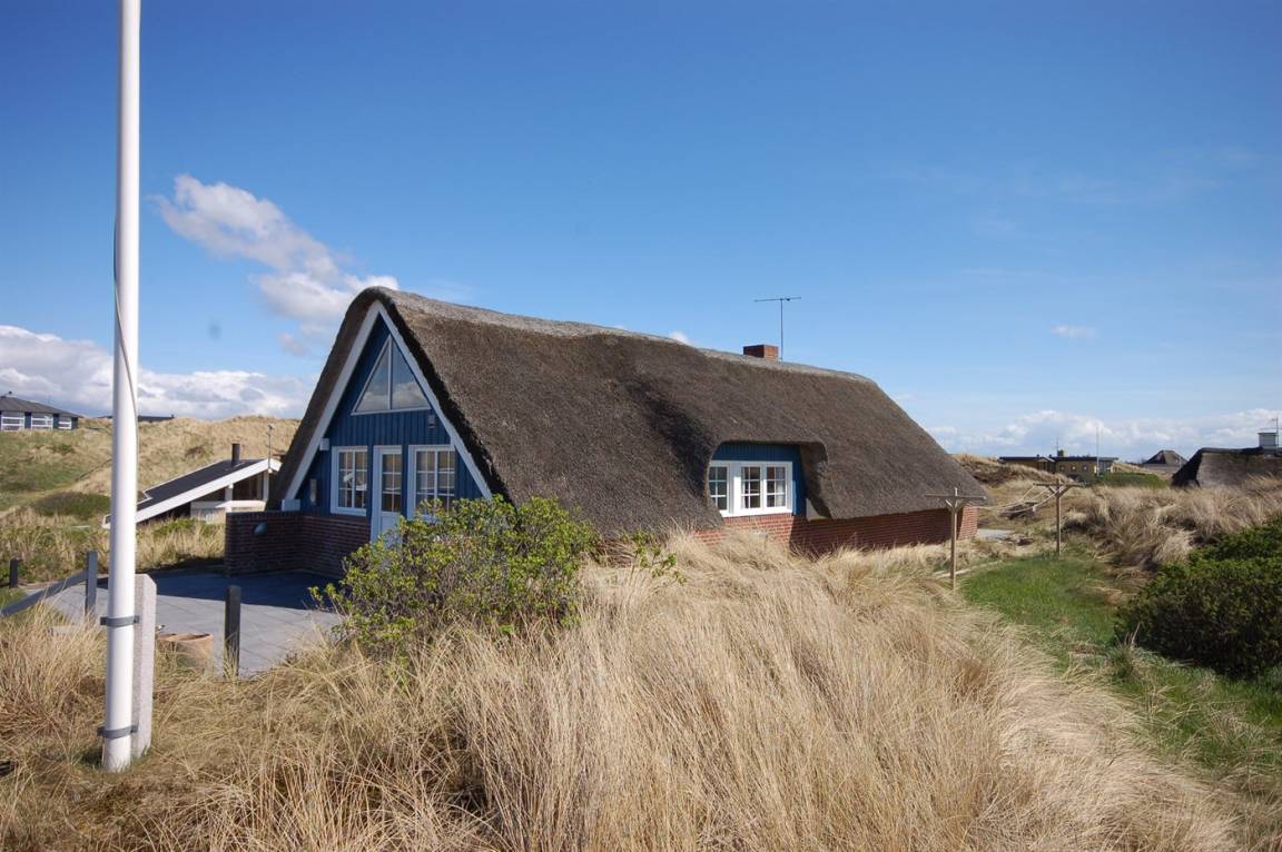 Auf einem hügeligen Dünengrundstück im naturschönen Gebiet auf Holmsland Klit liegt dieses Ferienhaus mit Reetdach. Innen gibt es Teppichböden in den Zimmern. Viele Aktivitätsmöglichkeiten im Gebiet.