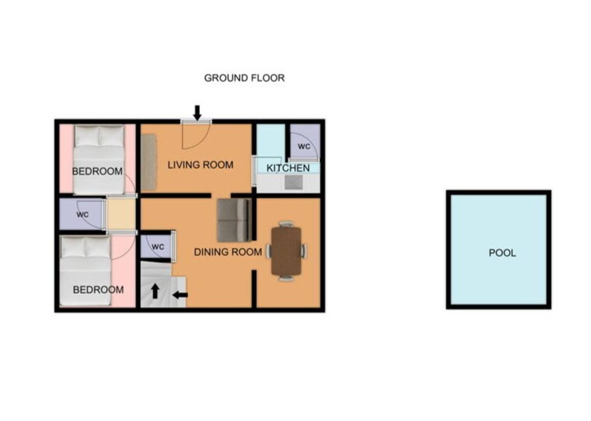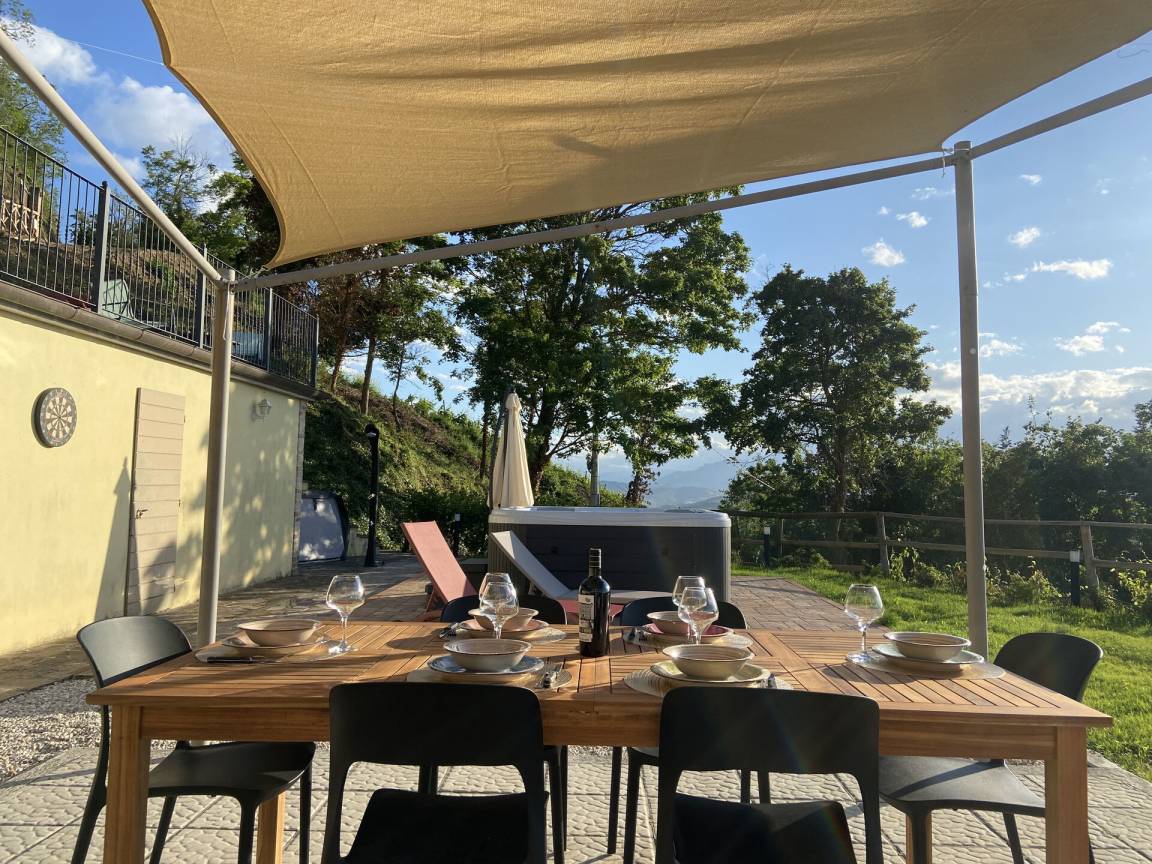 Wohnzimmer: Sofa, Schreibtisch, Kamin, Esstisch, WiFi Internet, Satelliten-TV, TV, Ausgang auf den Garten.
