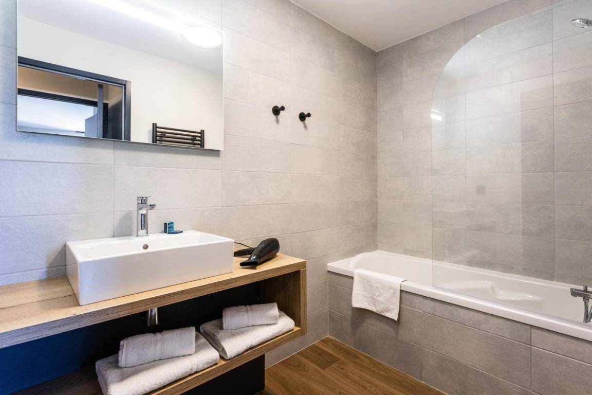 Fläche von ungefähr 62 m². Wohnzimmer mit Klappschlafcouch. 2 Schlafzimmer mit Doppelbett oder 2 Einzelbetten. Schlafzimmer mit 2 Stockbetten. Kochnische mit Wasserkocher, Kaffeemaschine, Backofen, Toaster, Geschirrspülmaschine, Mikrowellenherd, 2 Glaskeramikkochfelder, Kühlschrank. Badezimmer mit Haartrockner ODER Waschräume mit Haartrockner. 2 separate WCs. Balkon ODER Terrasse. Die oberen Betten sind nicht für Kinder unter 6 Jahren geeignet.