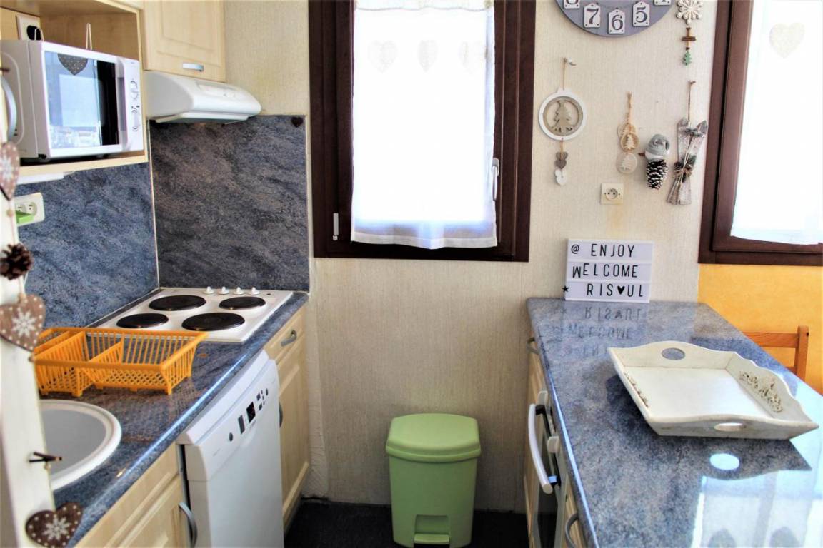 Fläche von ungefähr 45 m². 3te Etage. Orientierung : Süd-Ost, Süd. Wohnzimmer mit Klappschlafcouch. Schlafzimmer mit Doppelbett, Einzelbett. offener Schlafbereich mit 2 Stockbetten. Kochnische mit Kaffeemaschine, Backofen, kleiner Backofen mit Mikrowellenfunktion, Geschirrspülmaschine, Herdplatten, Kühlschrank. separates WC. Badezimmer mit Badewanne. Terrasse. Die oberen Betten sind nicht für Kinder unter 6 Jahren geeignet.