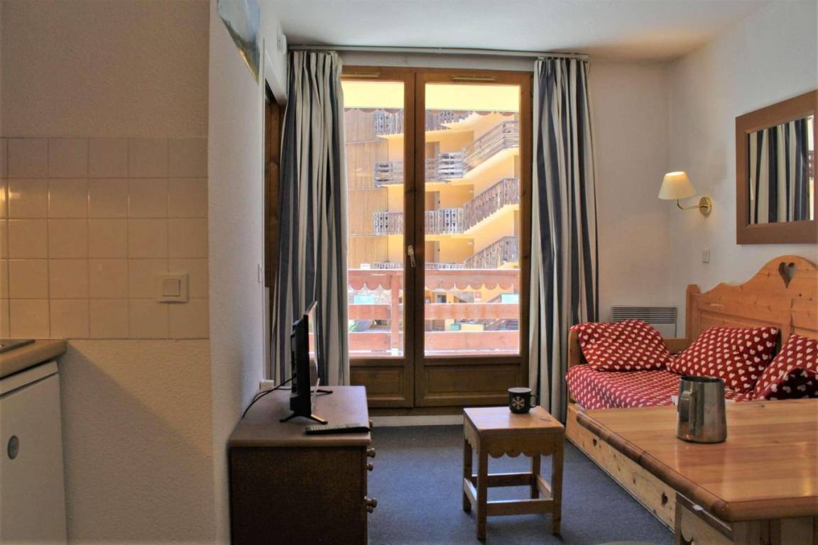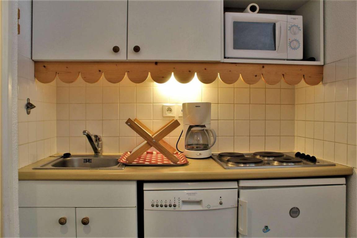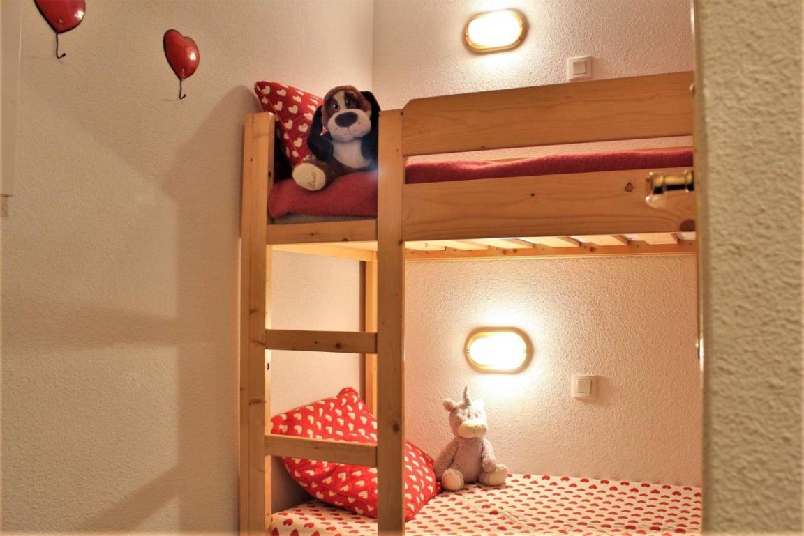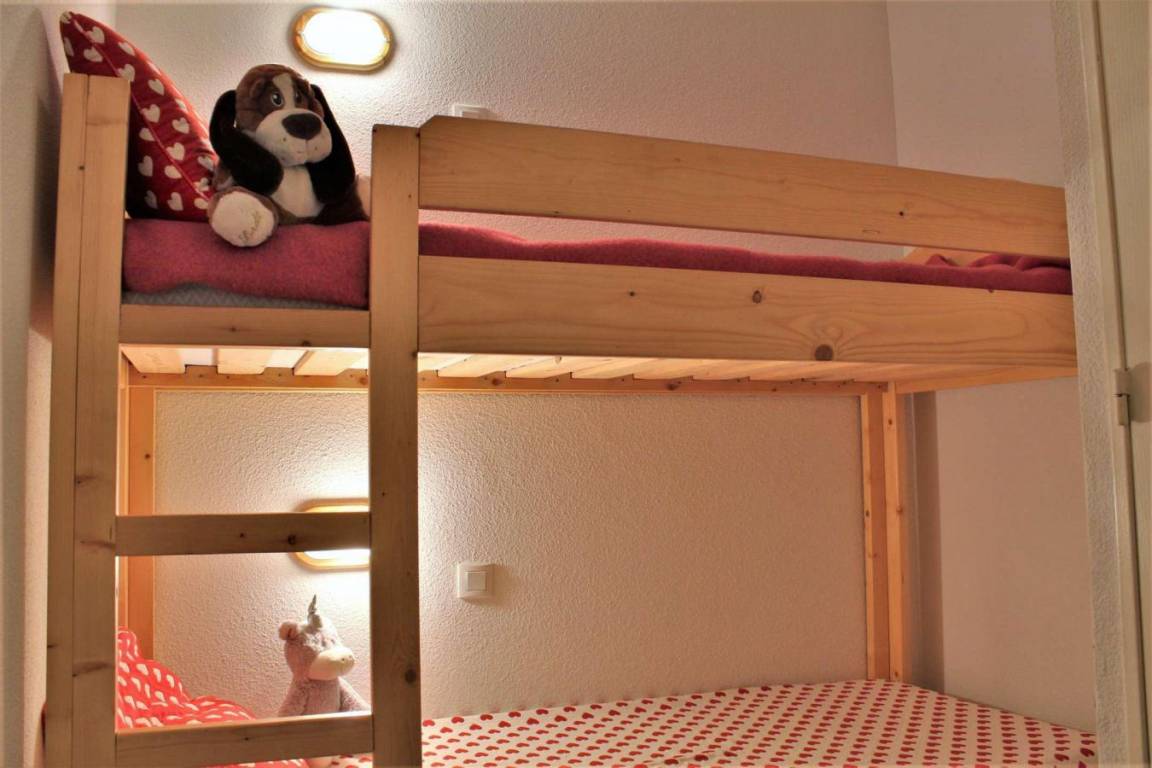 Fläche von ungefähr 26 m². 3te Etage. Orientierung : Süd, West. Wohnzimmer mit Ausziehschlafcouch für 2 Personen. offener Schlafbereich mit 2 Stockbetten. offener Schlafbereich mit 2 Ausziehbetten. Küche mit Wasserkocher, Kaffeemaschine (Nespresso), kleiner Backofen mit Mikrowellenfunktion, Toaster, Geschirrspülmaschine, 4 elektronische Herdplatten, Kühlschrank. Badezimmer mit Badewanne. separates WC. Balkon. Die oberen Betten sind nicht für Kinder unter 6 Jahren geeignet.