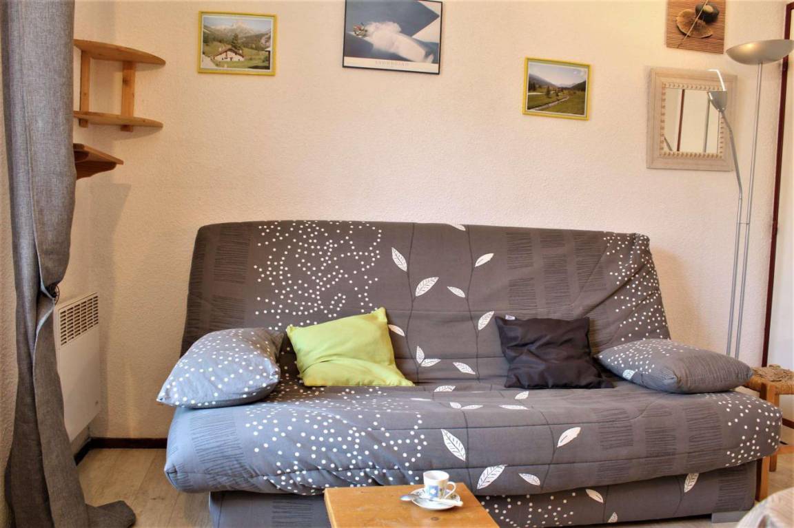 Fläche von ungefähr 20 m². 5te Etage. Orientierung : Süd. Wohnzimmer mit Klappschlafcouch. offener Schlafbereich mit 2 Stockbetten getrennt durch eine Tür. Küche mit Raclettegerät, Kaffeemaschine, Backofen, kleiner Backofen mit Mikrowellenfunktion, 2 Herdplatten, Kühlschrank. Badezimmer mit Badewanne. separates WC. Balkon. Skiaufbewahrungsfach. Die oberen Betten sind nicht für Kinder unter 6 Jahren geeignet.