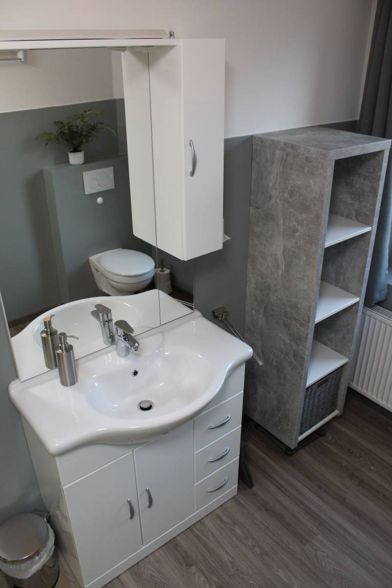 Im Inneren des Ferienhauses erwartet Sie eine zweckmäßige und gut ausgestattete Innenausstattung, die keine Wünsche offen lässt. Mit zwei Schlafzimmern und jeweils einem dazugehörigen Badezimmer bietet das Haus ausreichend Privatsphäre und Komfort für alle Gäste. Die Freude am Kochen können Sie in einer voll ausgestatteten Küche mit Cerankochfeld, Filter-Kaffeemaschine, Spülmaschine und Wasserkocher ausleben. Zudem ist eine Waschmaschine zur alleinigen Nutzung vorhanden, was besonders bei längeren Aufenthalten praktisch ist.