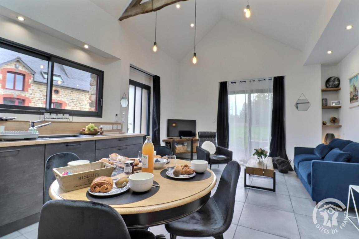 „Très bon accueil, gîte neuf où tout est bien pensé pour passer un bon séjour. Rien ne manque, bonne literie, très calme, très propre. Nous avons pù visiter, cancale, Dinard, Dinan, st malo, vitré et fougères malgré un temps pluvieux. On recommande fortement.“