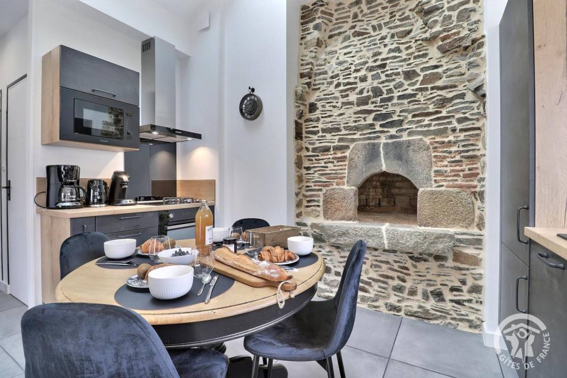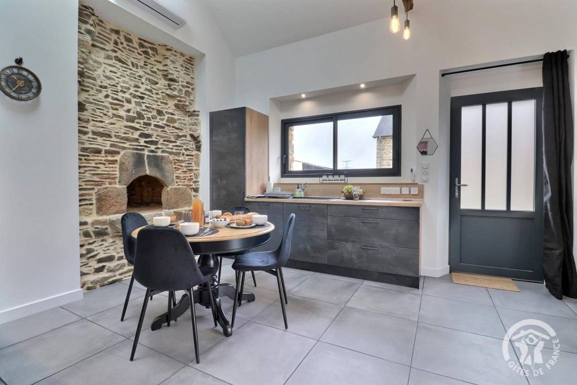 „Gite exceptionnel, décoré avec goût, le mobilier en bois massif (fait par un artisan ébeniste) est de toute beauté, avec un four et un puit de lumière, qui rend le gite très lumineux.Gite à la campagne, situé à 12 km de Fougères. Notre hotesse est très discrette, mais très accueillante. C'était de très bonne vacances dans un très bel endroit.“