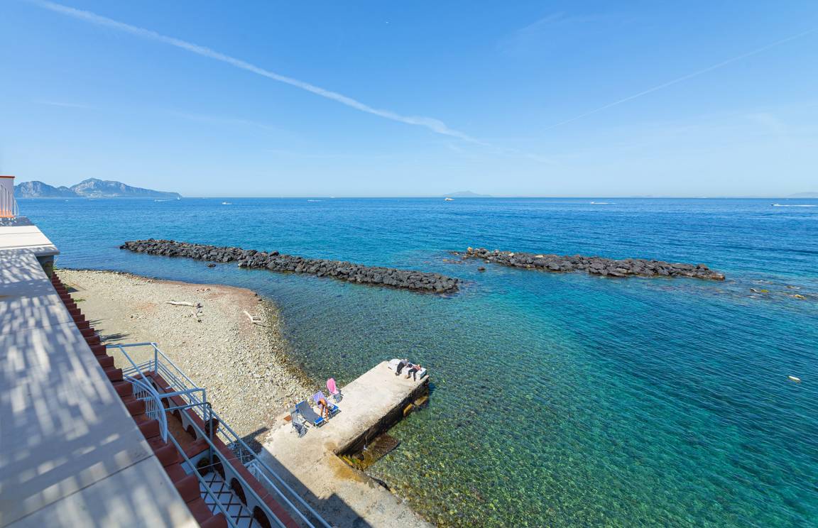 The nearest beach, during summer season with service, is a short walk off (ca. 250 m) and stretches up to Marina della Lobra, the old harbor of Massa Lubrense. Restaurants, bars, a newspaper stand and a small grocery store are found about 1 km further on along the seaside. Another small supermarket is 900 m off.
