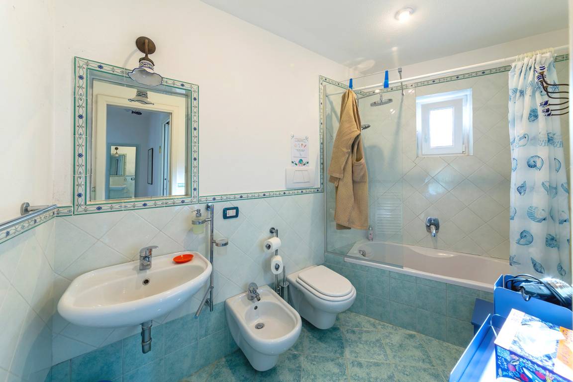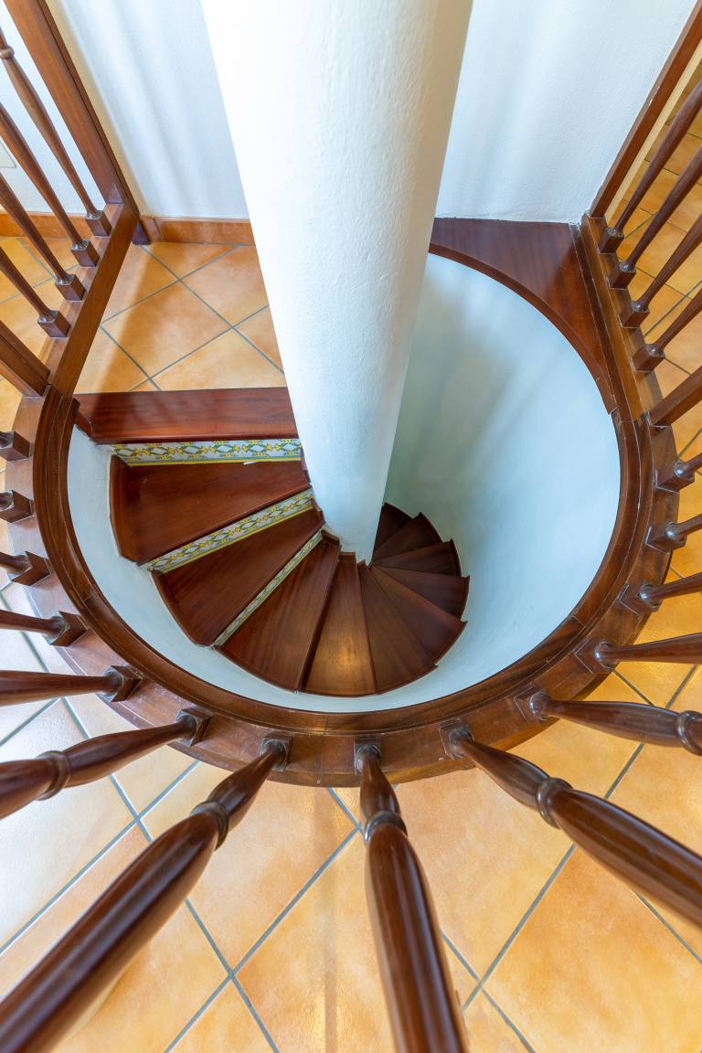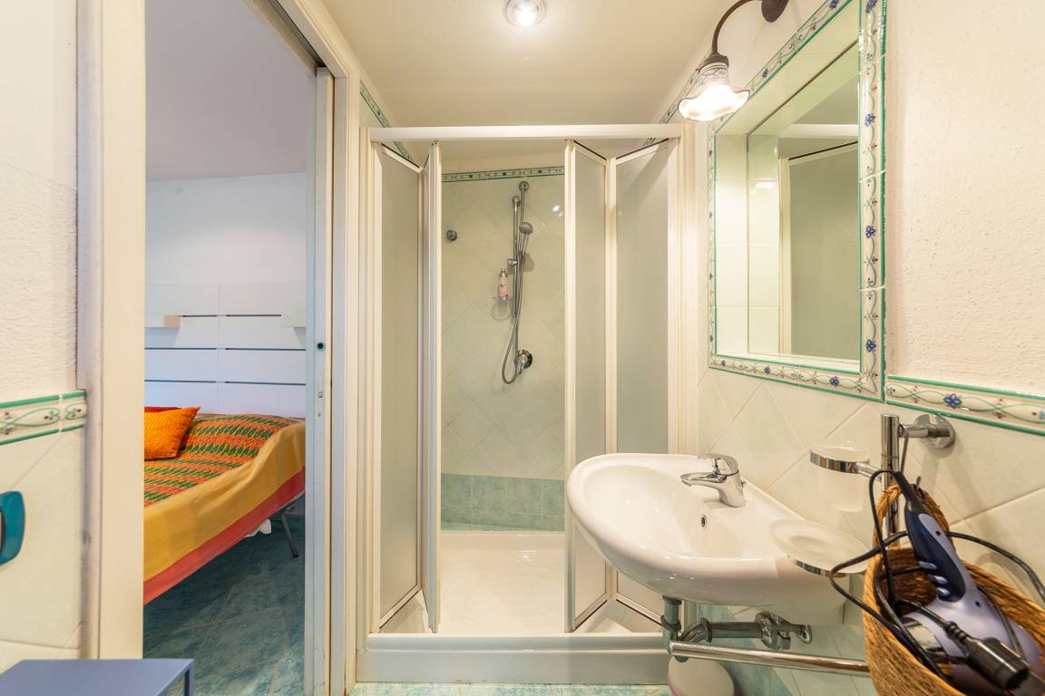 From the living area, a spiral staircase runs down to the lower floor and another double bedroom with en suite bathroom (see pictures 19 onwards). The downstairs rooms (ca. 20 m²) usually remain unoccupied and locked, if Casa Partenope is booked for and occupied by only 4 persons. In case you require more space and are considering renting the lower floor as well, contact us for more information or send us a non-binding inquiry.