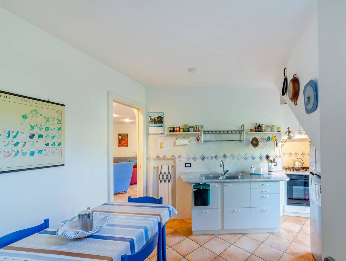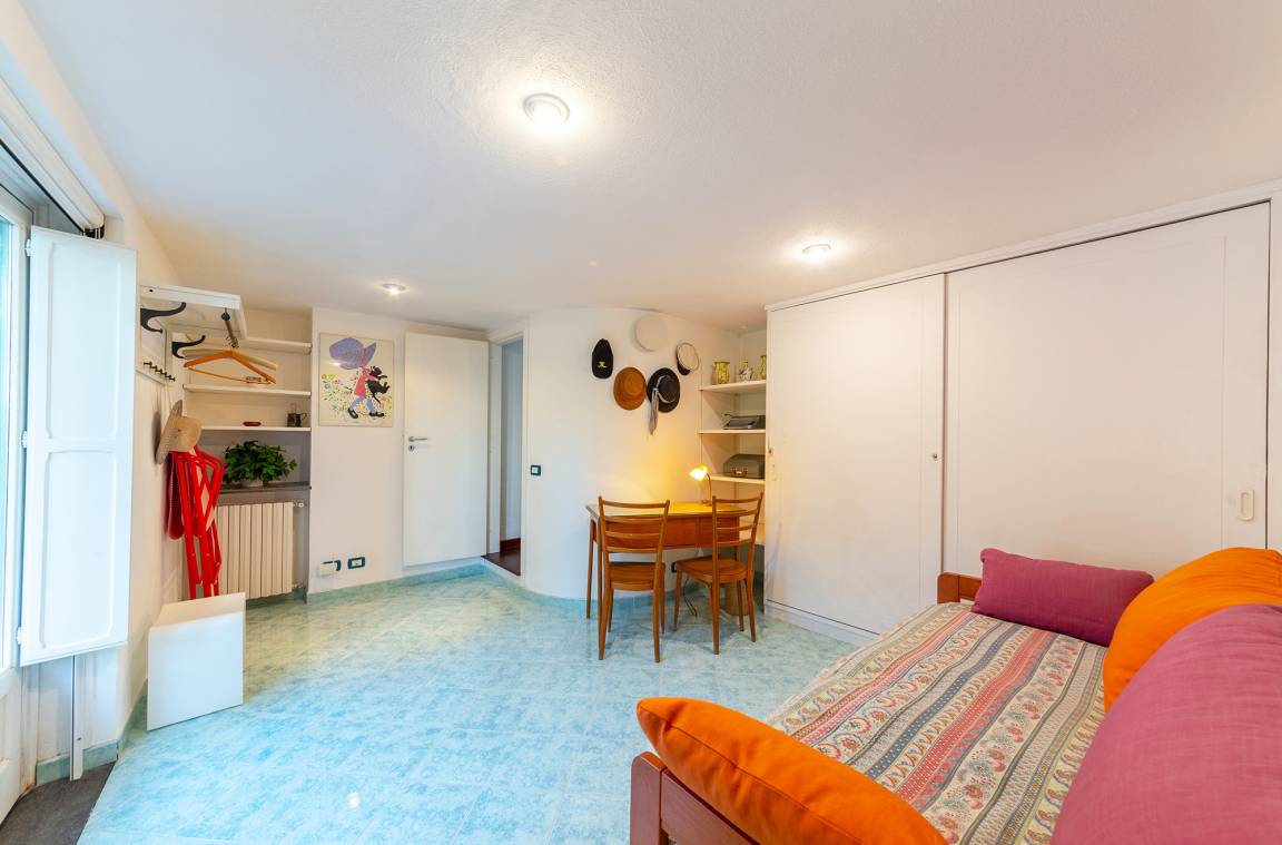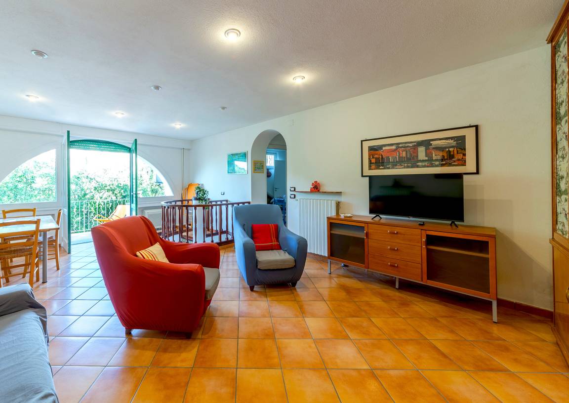 The living-dining room is the heart of the apartment; its picture-style windows and French doors open upon a view of the breathtaking landscape and the sea. The sofa in the living area can be turned into a sleeping facility for two.