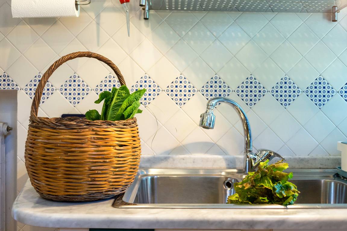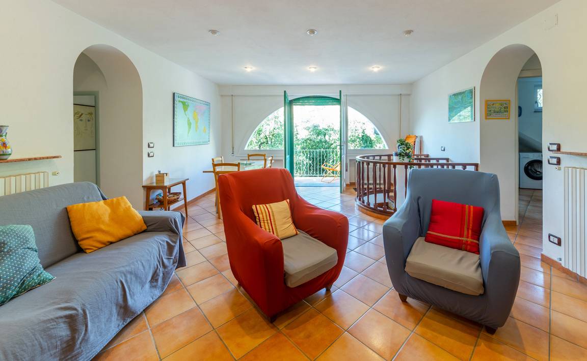 Vom reservierten Parkplatz für Ihr Auto erreichen Sie die Wohnung über wenige Treppenstufen. Im Inneren der Casa Partenope finden Sie eine behagliche Atmosphäre vor.