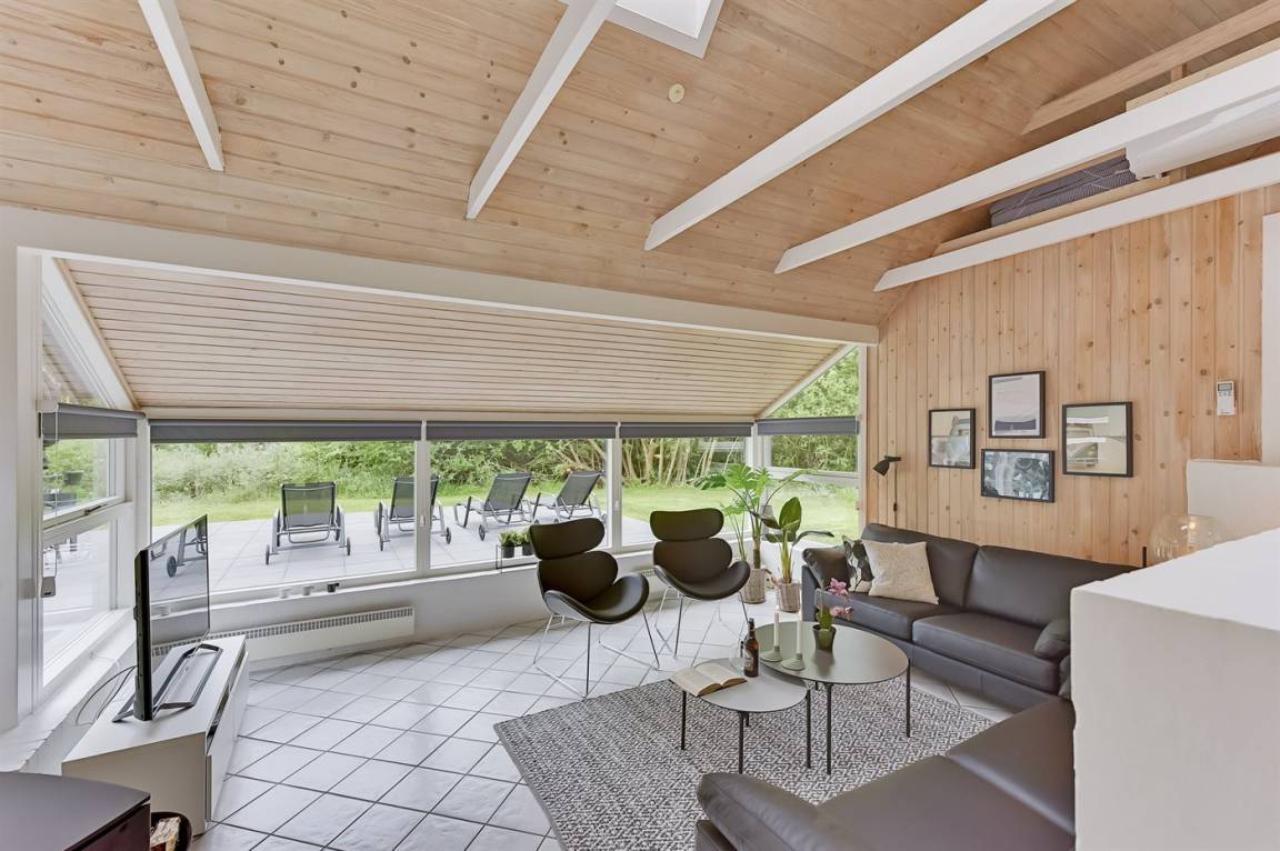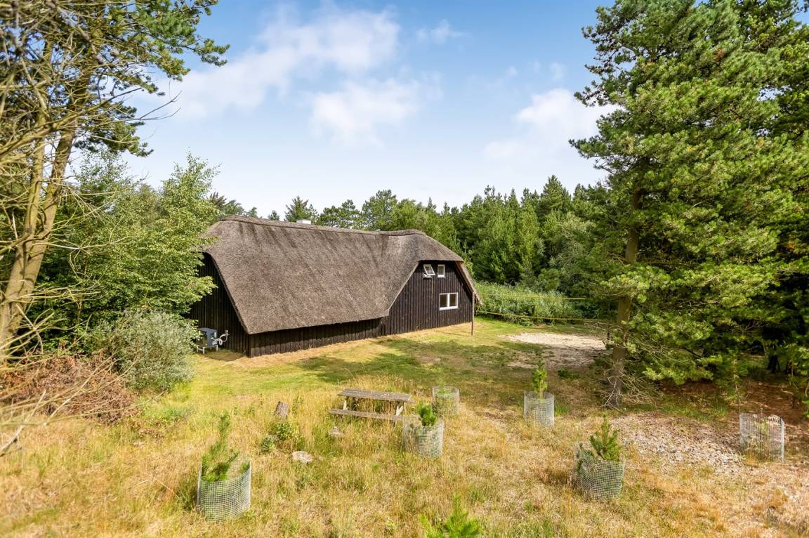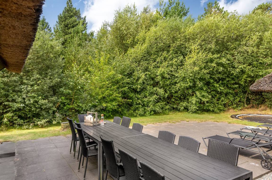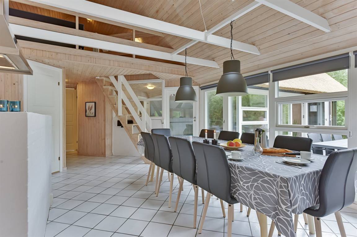 Dieses Ferienhaus mit Reetdach liegt auf einem von Bäumen umgebenen Naturgrundstück - nicht weit vom schönen, breiten Strand entfernt. Zum Haus gehört eine große, ungestörte Terrasse mit Gartenmöbeln und gutem Windschutz. Das Wohnzimmer mit großer Fensterfront liegt in versetzter Ebene. Übrigens: Zusätzlich zu den 5 Schlafzimmern gibt es 2 Schlafplätze in Einzelbetten im offenen Obergeschoss.