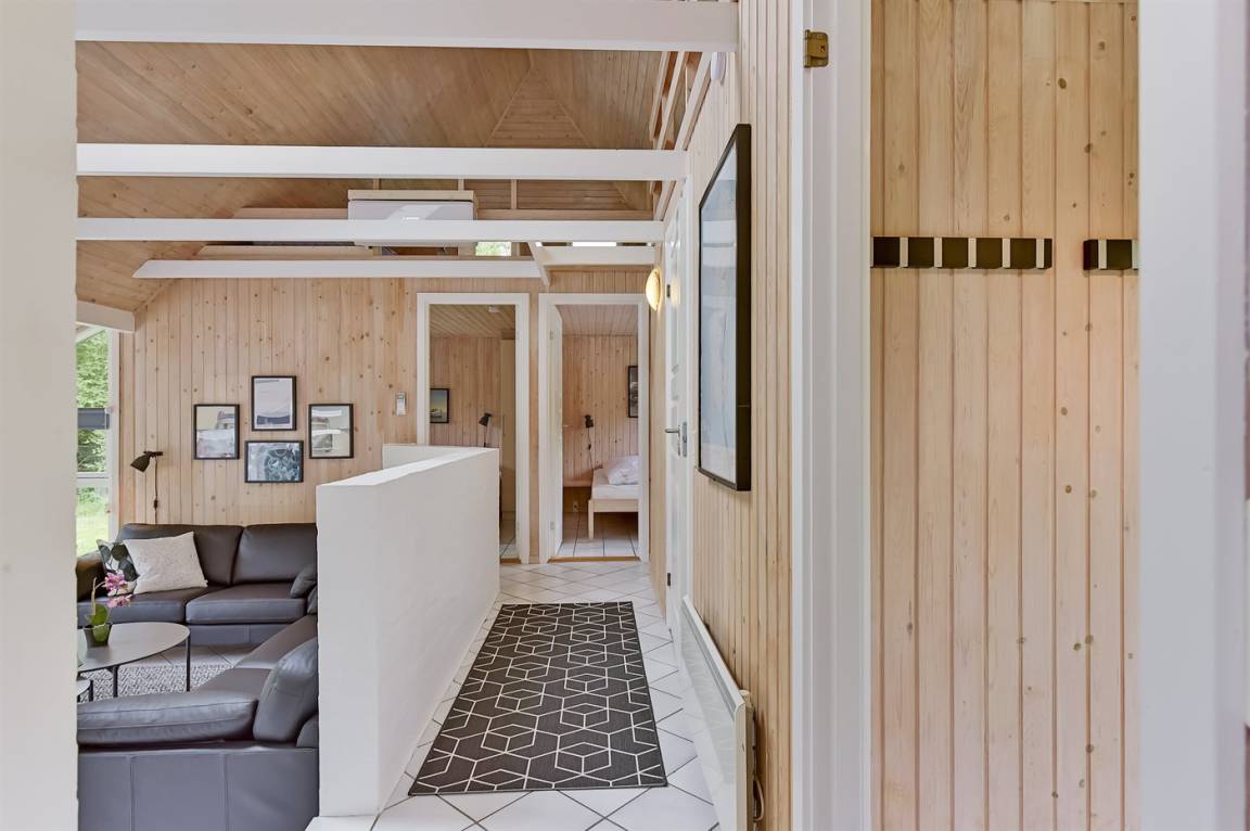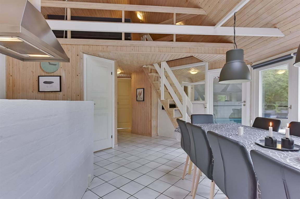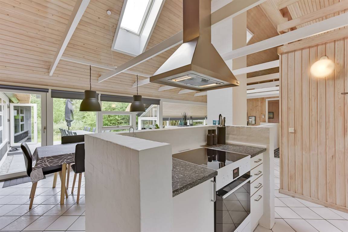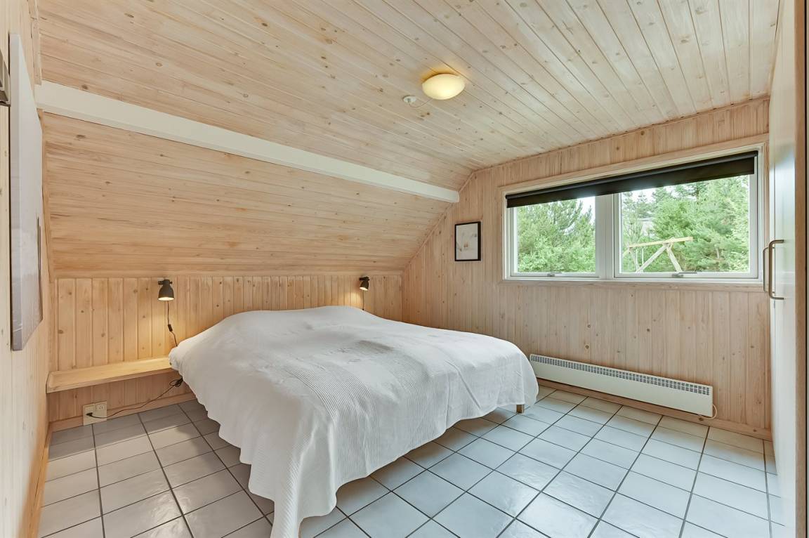 Dieses Ferienhaus mit Reetdach liegt auf einem von Bäumen umgebenen Naturgrundstück - nicht weit vom schönen, breiten Strand entfernt. Zum Haus gehört eine große, ungestörte Terrasse mit Gartenmöbeln und gutem Windschutz. Das Wohnzimmer mit großer Fensterfront liegt in versetzter Ebene. Übrigens: Zusätzlich zu den 5 Schlafzimmern gibt es 2 Schlafplätze in Einzelbetten im offenen Obergeschoss.