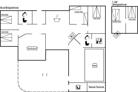 MultimedienIn der Ferienunterkunft gibt es einen Fernseher. DVD-Player. Stereoanlage. CD-Player. Mindestens 4 dänische Fernsehsender. Mindestens 4 deutsche Fernsehsender. Es steht kabellose Internetverbindung zur Verfügung.