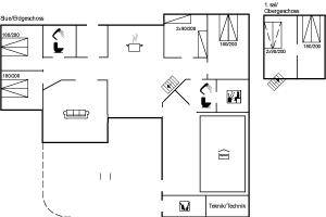SchlafverhältnisseDie Schlafplätze verteilen sich auf 5 Schlafräume. 8 Schlafplätze in Doppelbetten. 2 Schlafplätze in Einzelbetten. 2 Schlafplätze auf einer Doppelschlafcouch. 2 von diesen Schlafplätzen befinden sich im offenen Obergeschoss. Ferner steht ein Kinderbett zur Verfügung.