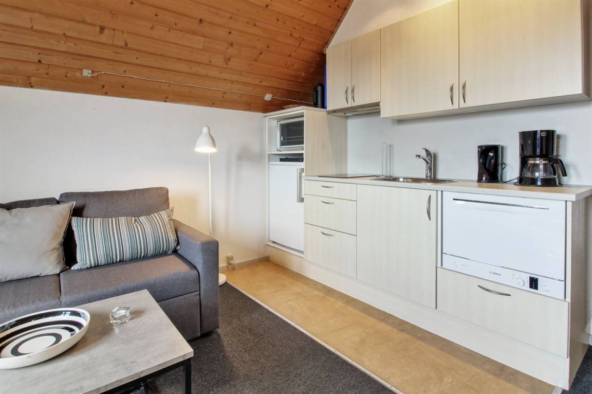 KücheDie Küche ist mit Kühlschrank ausgestattet. Außerdem gibt es 2 Induktions-Kochzonen, Minibackofen sowie Tisch-Geschirrspüler.