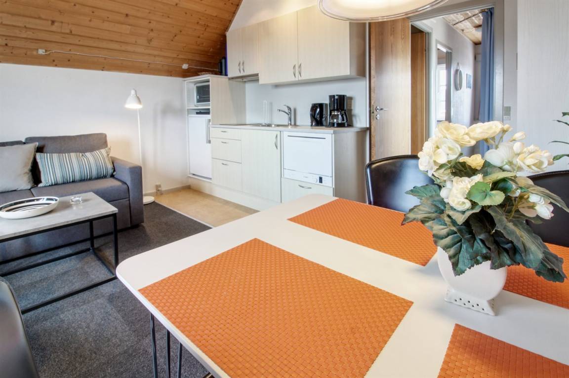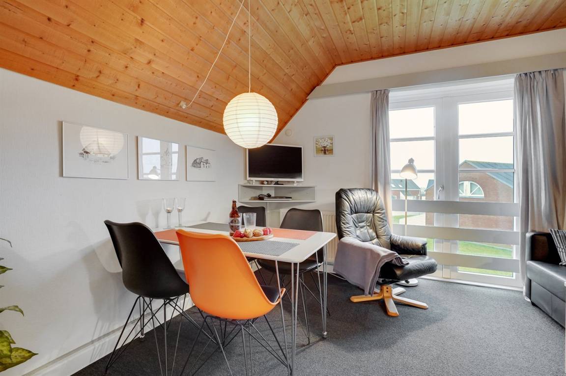 Diese kleine und gemütlich eingerichtete Ferienwohnung liegt in der Ferienanlage RIM – dicht am Spielplatz und dem Gemeinschaftsgebäude. Die Ferienanlage bietet gute Aktivitätsmöglichkeiten für die ganze Familie an z. B. Außenswimmingpool, Swimmingpool, Sauna, Solarium, Tennisplätze, Spielplätze u. a. m. Übrigens: Der Raum mit der Doppelschlafcouch hat keine Tür– nur ein Vorhang trennt den Raum von den übrigen Räumen der Wohnung. Außerdem steht eine zusätzliche Schlafcouch, die sich im Wohnzimmer befindet, zur Verfügung.
