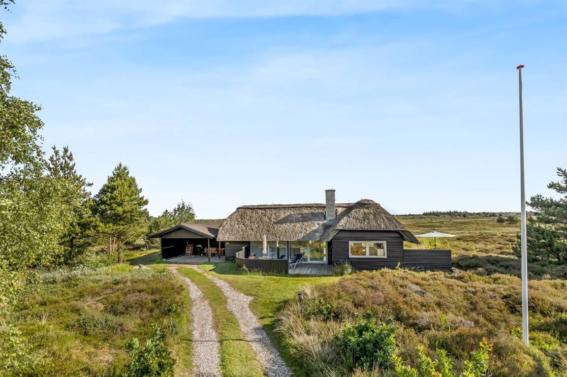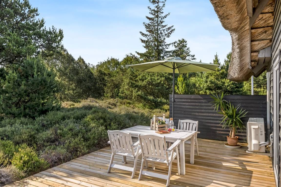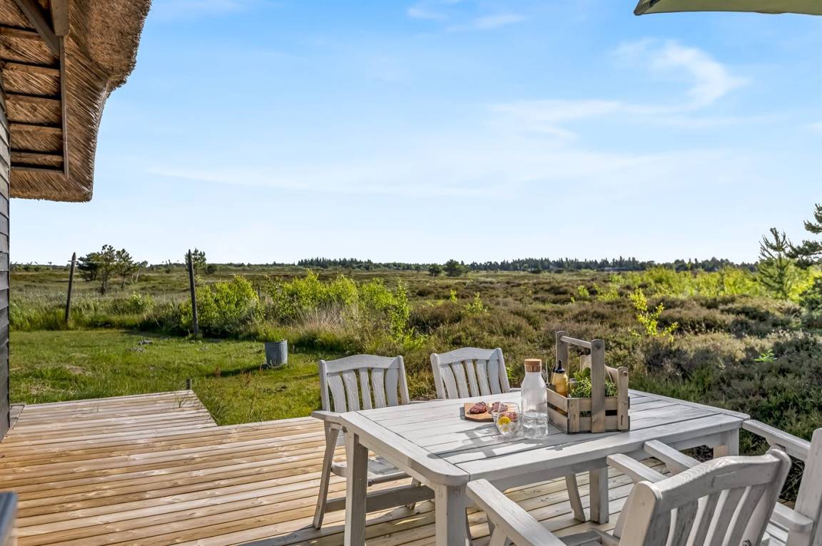 Dieses Ferienhaus mit Reetdach liegt auf einem ruhigen Weg im Feriengebiet Kongsmark - mit Aussicht zum Naturschutzgebiet mit seinem reichen Tierleben.