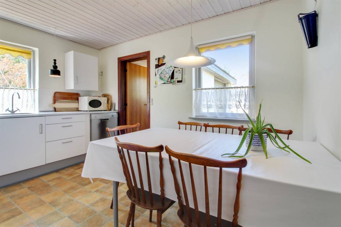 „Advice to other guests: Det er et brugt helårs hjem. Alt fungerer. Det har atmosfære. Hyggeligt. The vacation at the holiday home: Det var et meget hyggeligt hus. Men man kunne godt have et par billeder af brændeovnen. På billederne kan man ikke se nogen skorsten. Derfor var vi sikre på der ikke var nogen. Meget positivt at der var en. Meget hyggelig varme, når vejret ikke ville spille med. The local office: Man ringer om et problem, og de løser det bedst muligt. Det duer. Men telefonen kunne godt være åben en time før. Vi er nogle, der er vant til at starte om morgenen. Departure and follow up: Slutafregning er lidt længe undervejs. Cleanliness: Der var en del skidt bag dør i stort badeværelse. Der var skidt mellem trestikker og væg under vinduet i værelset ved siden af køkkenet. Der var mange STORE myrer i det store soveværelse og lidt i køkkenet. Der var en ikke slukbar radiator i det lille badeværelse. Blev meldt fredag og der var en forbi og afmontere den. Kunne ikke justeres i thermostaten. Men huset var meget fint hyggeligt til 8 personer. The holiday home itself: Ikke det sidste nye, men alt virkede som det skulle. Kan sagtens forestille mig at leje det igen en gang.“