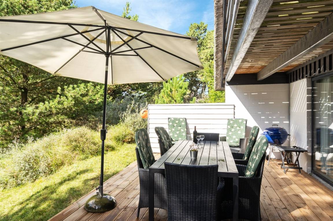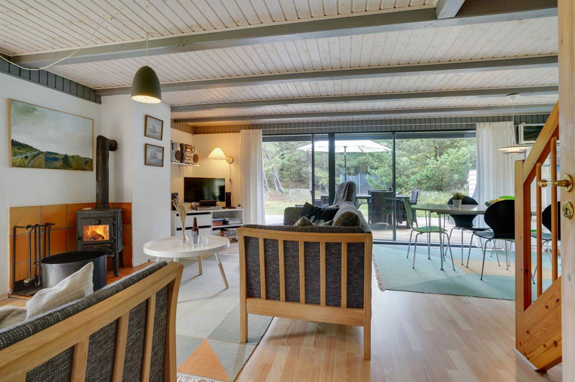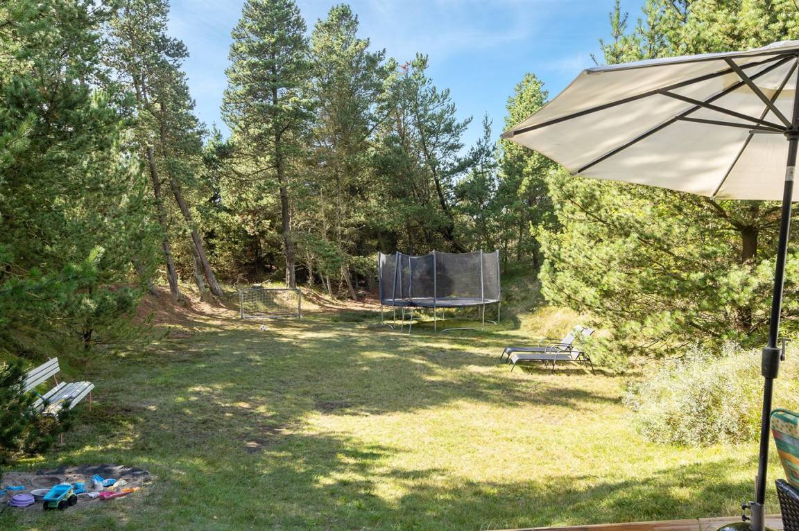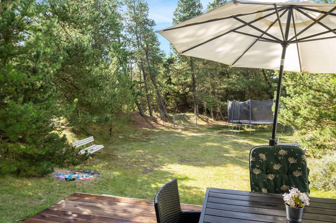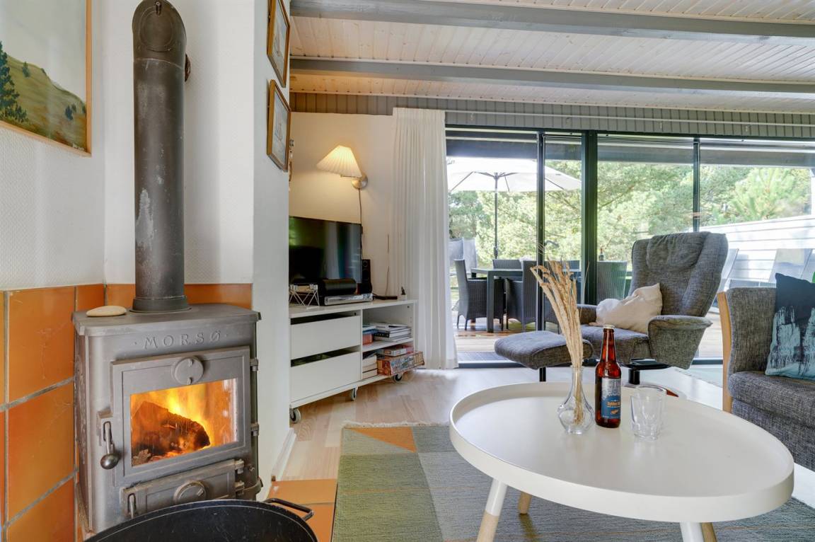 Hübsches 2-stöckige Ferienhaus aus Stein mit Reetdach, 1973 gebaut und 2016 letztens modernisiert. Das Haus liegt auf einem großen Naturgrundstück mit großen Bäumen und gutem Windschutz - im ruhigen Gebiet, Vesterhede. Zum Haus gehören sowohl überdachter Balkon als auch eine zum Teil überdachte Terrasse mit Gartenmöbeln. Badezimmer mit Fußbodenheizung. Sauna. Die schöne, helle Küche mit Fußbodenheizung ist mit u. a. Geschirrspüler, Mikrowelle, Tiefkühlgerät und Waschmaschine ausgestattet. Das nette Wohnzimmer ist mit Kaminofen, DVD-Spieler, Blaupunkt Flatscreen-TV mit Satellitenanschluss und Stereoanlage mit Radio und CD-Spieler eingerichtet. Ferner kostenlose, kabellose Internetverbindung vorh. (Computer ist mitzubringen). 3 Schlafzimmer; 2 mit Doppelbett im Obergeschoss und 1 mit Doppelbett und Einzelbett im Erdgeschoss. Es ist eine energiegerechte Wärmepumpe installiert. Für die kleinen Feriengäste gibt es Kinderbett, Kinderhochstuhl, Schaukel und Sandkasten. Auf dem Grundstück, das vom Weg zurückgezogen liegt, gibt es ein großes Trampolin, Fußballtor und viel Platz zum Spielen.