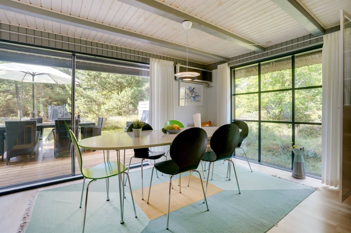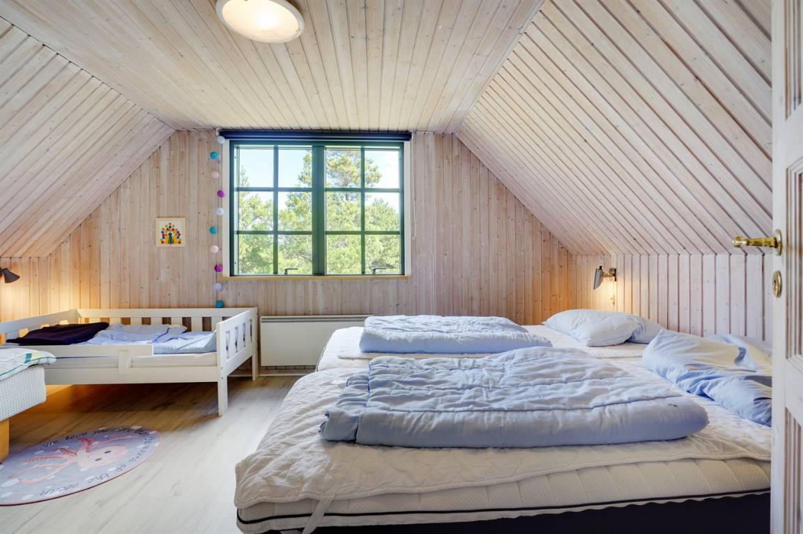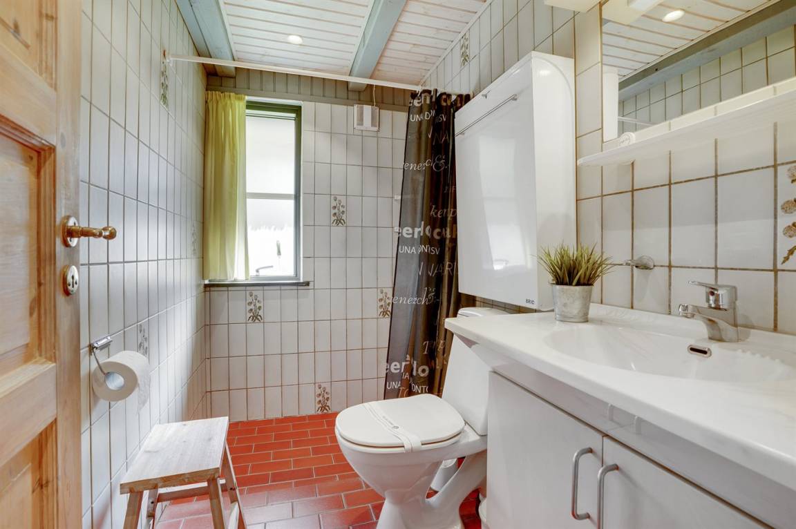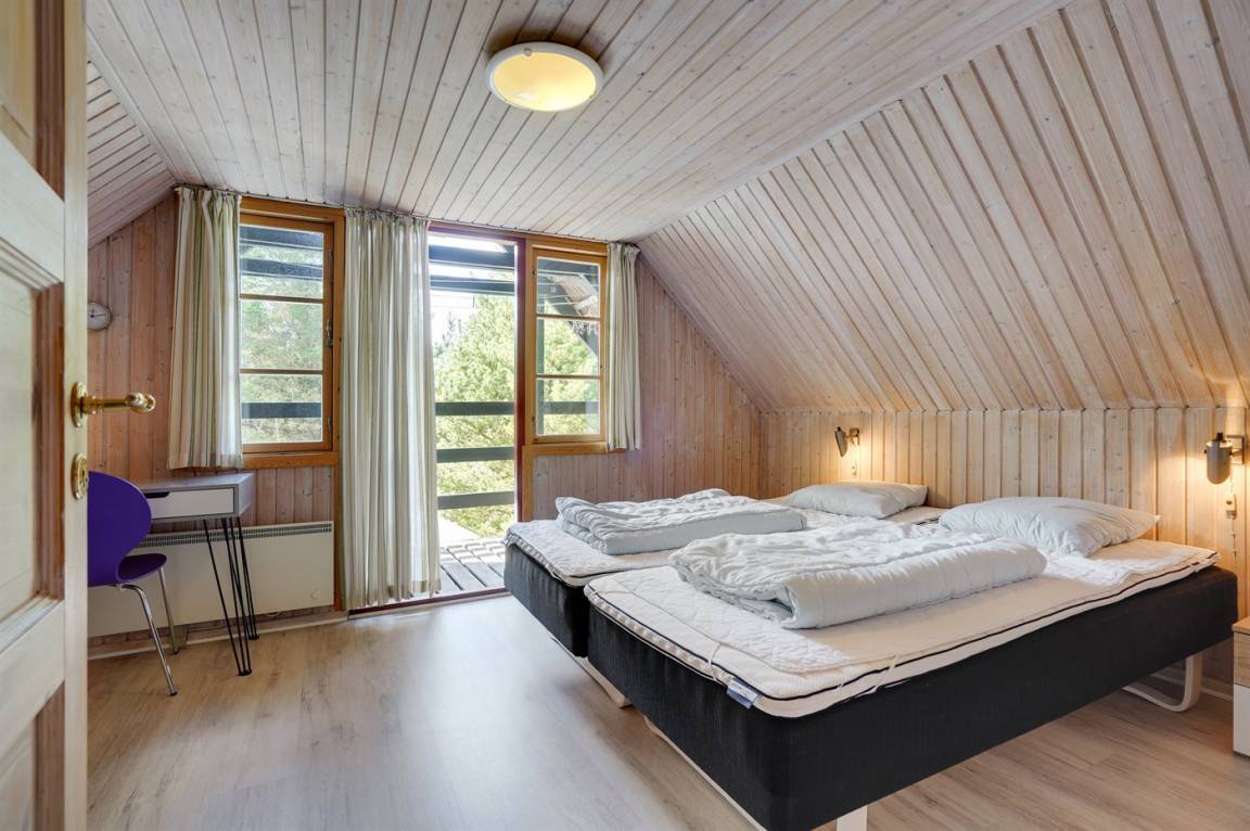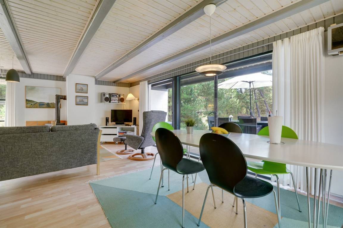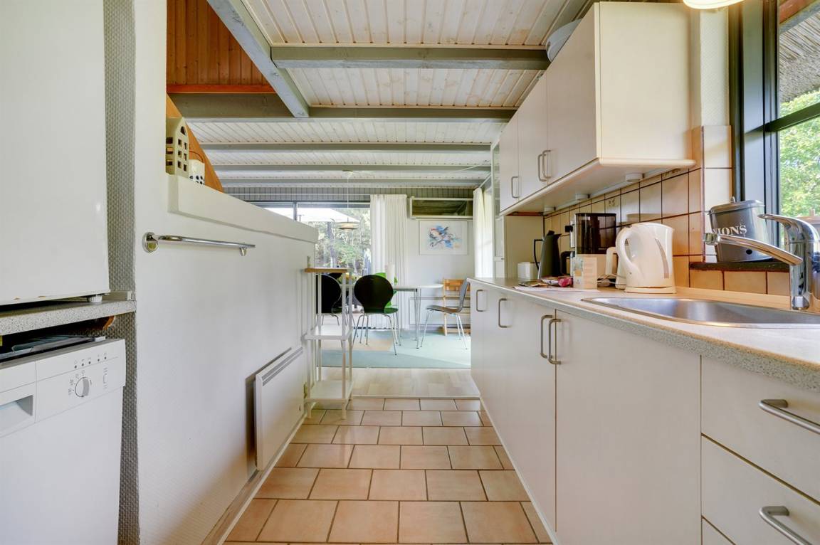 Hübsches 2-stöckige Ferienhaus aus Stein mit Reetdach, 1973 gebaut und 2016 letztens modernisiert. Das Haus liegt auf einem großen Naturgrundstück mit großen Bäumen und gutem Windschutz - im ruhigen Gebiet, Vesterhede. Zum Haus gehören sowohl überdachter Balkon als auch eine zum Teil überdachte Terrasse mit Gartenmöbeln. Badezimmer mit Fußbodenheizung. Sauna. Die schöne, helle Küche mit Fußbodenheizung ist mit u. a. Geschirrspüler, Mikrowelle, Tiefkühlgerät und Waschmaschine ausgestattet. Das nette Wohnzimmer ist mit Kaminofen, DVD-Spieler, Blaupunkt Flatscreen-TV mit Satellitenanschluss und Stereoanlage mit Radio und CD-Spieler eingerichtet. Ferner kostenlose, kabellose Internetverbindung vorh. (Computer ist mitzubringen). 3 Schlafzimmer; 2 mit Doppelbett im Obergeschoss und 1 mit Doppelbett und Einzelbett im Erdgeschoss. Es ist eine energiegerechte Wärmepumpe installiert. Für die kleinen Feriengäste gibt es Kinderbett, Kinderhochstuhl, Schaukel und Sandkasten. Auf dem Grundstück, das vom Weg zurückgezogen liegt, gibt es ein großes Trampolin, Fußballtor und viel Platz zum Spielen.