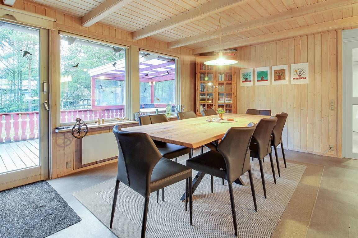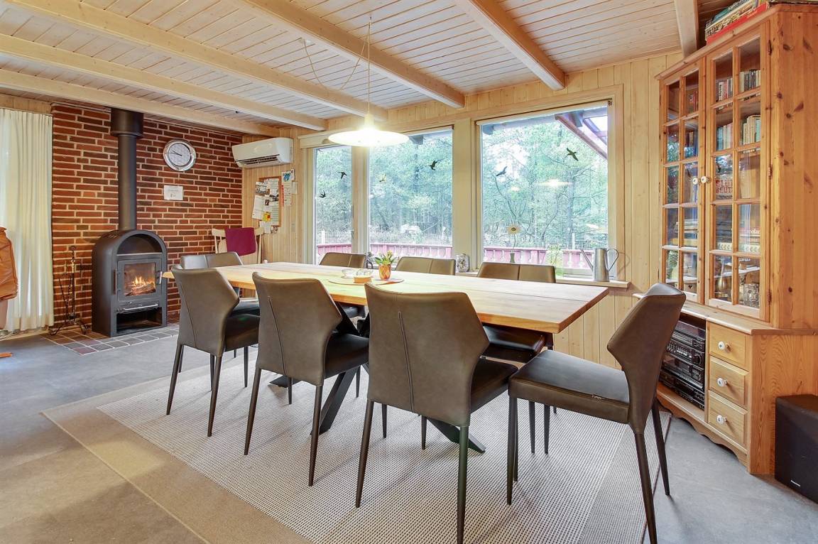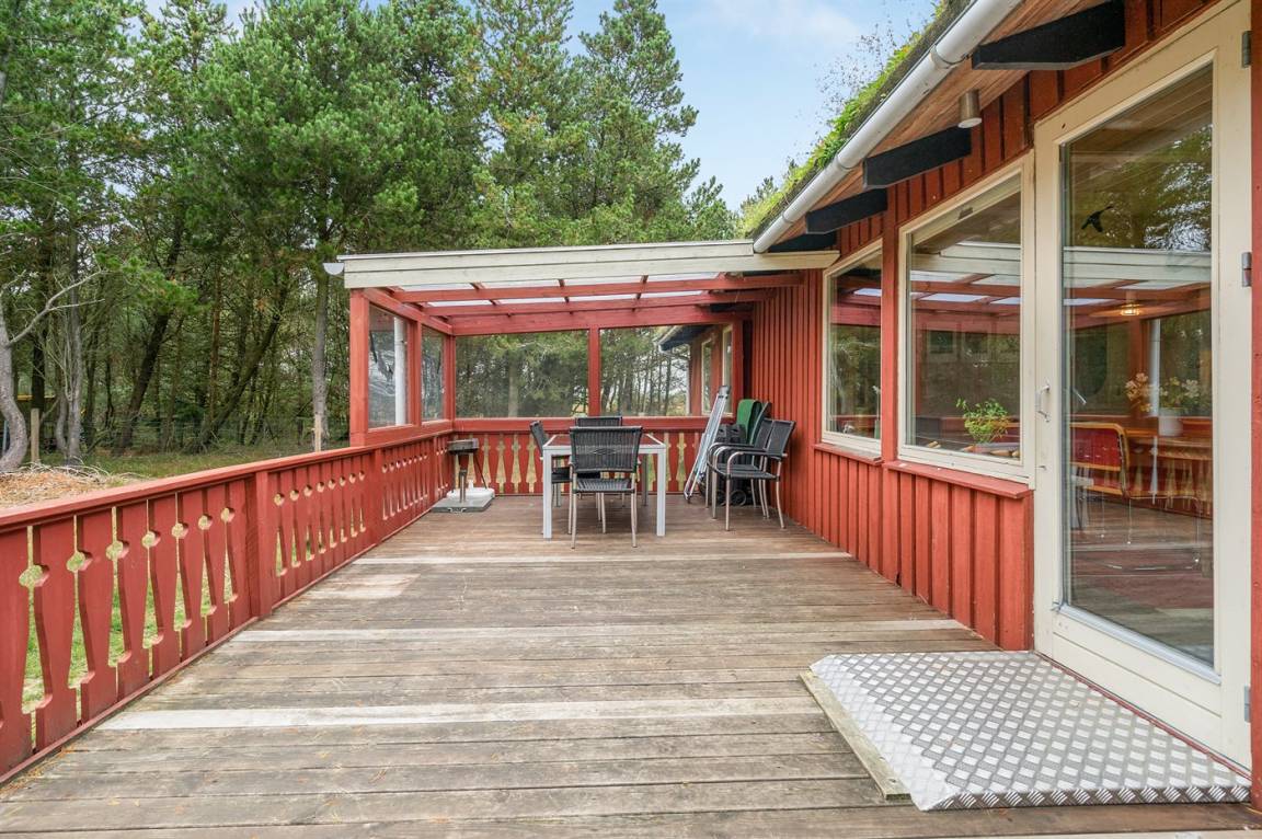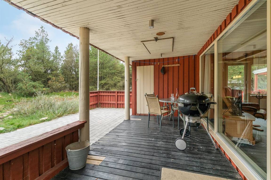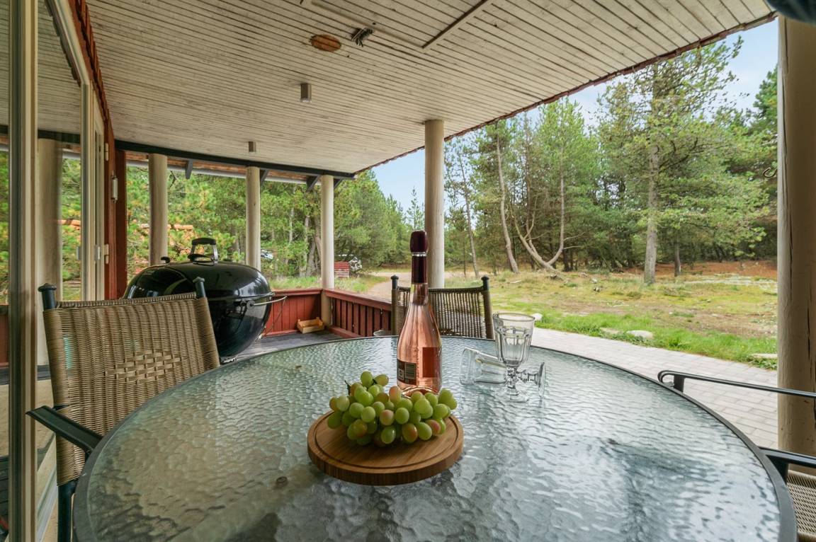 Hübsches Ferienhaus aus Holz, 1972 gebaut und 2015/2016 letztens modernisiert, mit einer einzigartigen Lage. Das große Naturgrundstück, das teilweise eingezäunt (200 m²) und von Bäumen umgeben ist liegt in einer Sackgasse. Zum Haus gehören 2 teilweise überdachte und abgeschirmte Terrassen sowie Gartenmöbel.