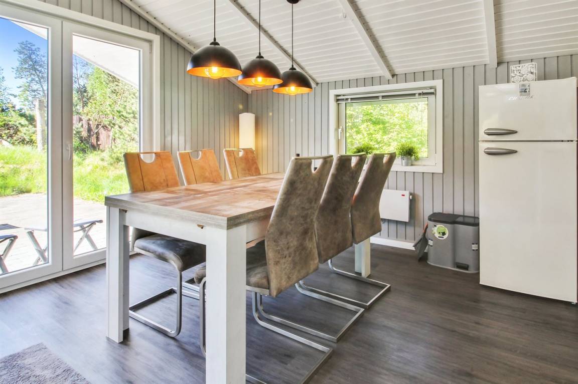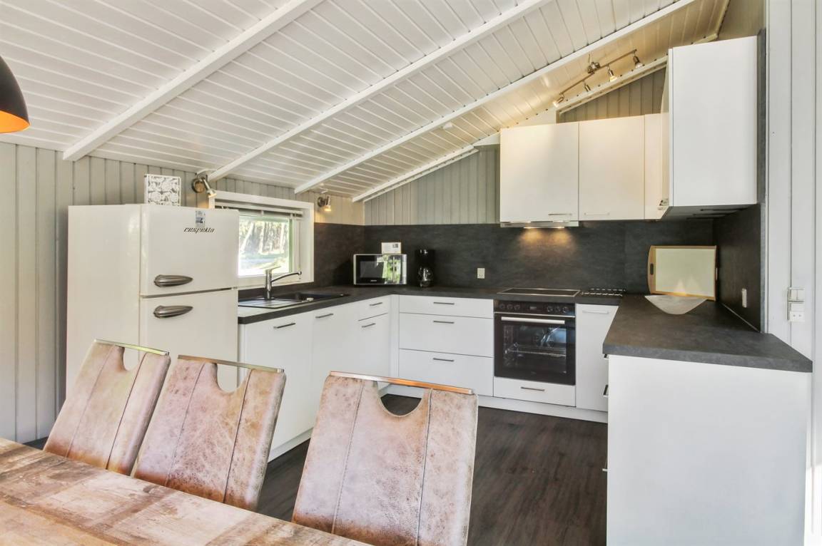 Ein schönes, helles Ferienhaus mit kombinierter Küche, Esszimmer und Wohnzimmer, von wo aus man direkt auf die schöne Südterrasse gelangt. Vom Haus aus ist es nicht weit nach Sønderstrand mit guten Aktivitätsmöglichkeiten und zum schönen Badestrand von Lakolk.