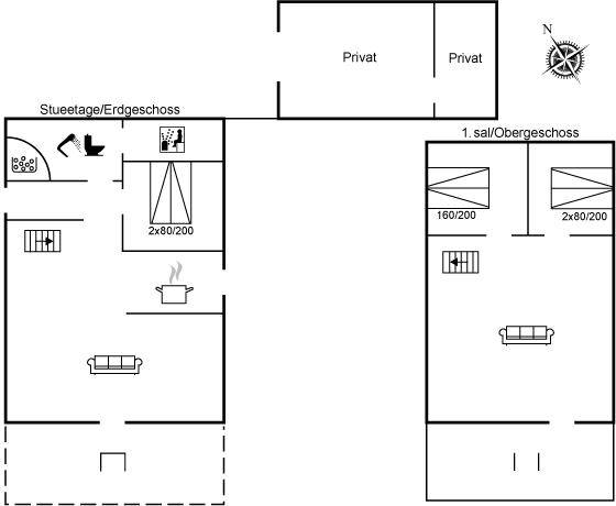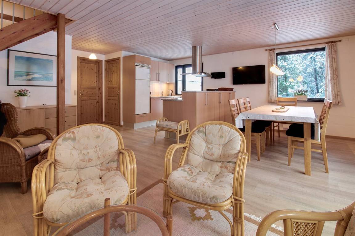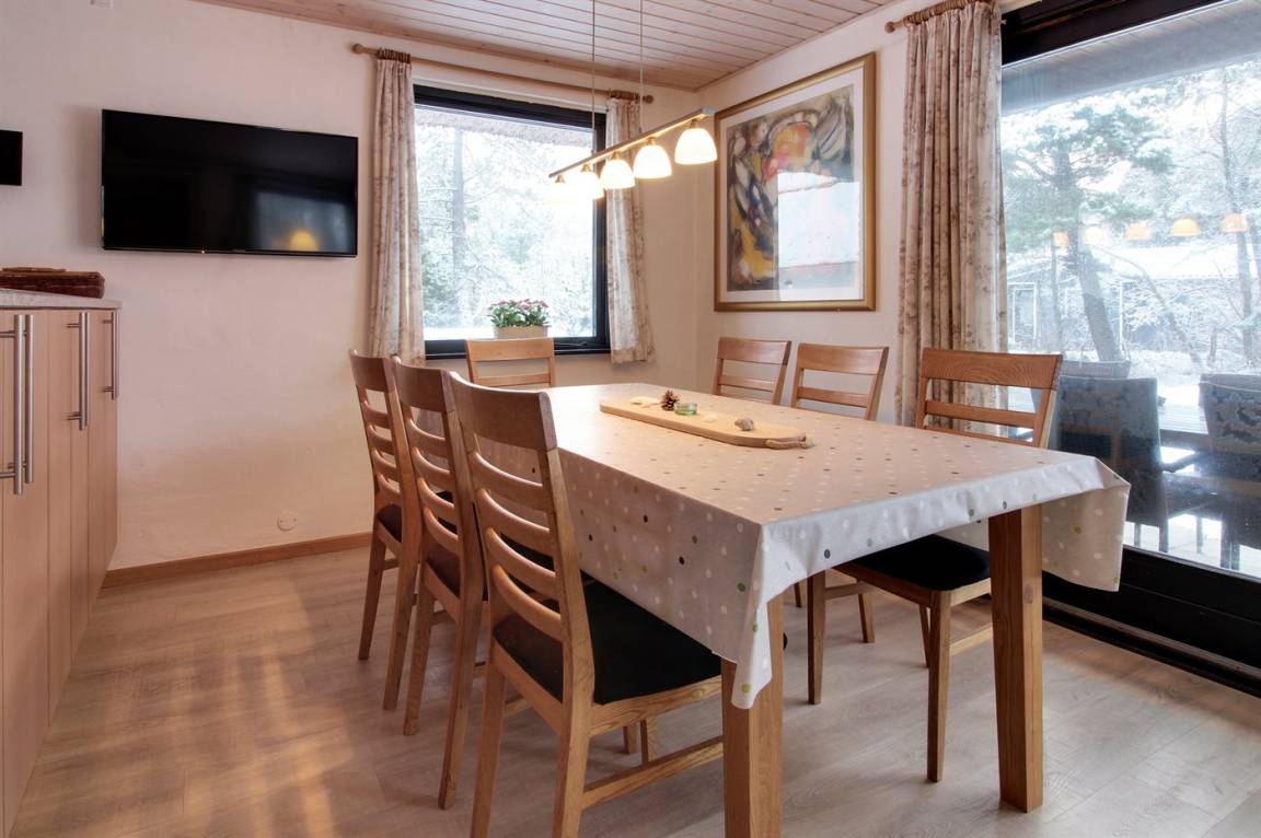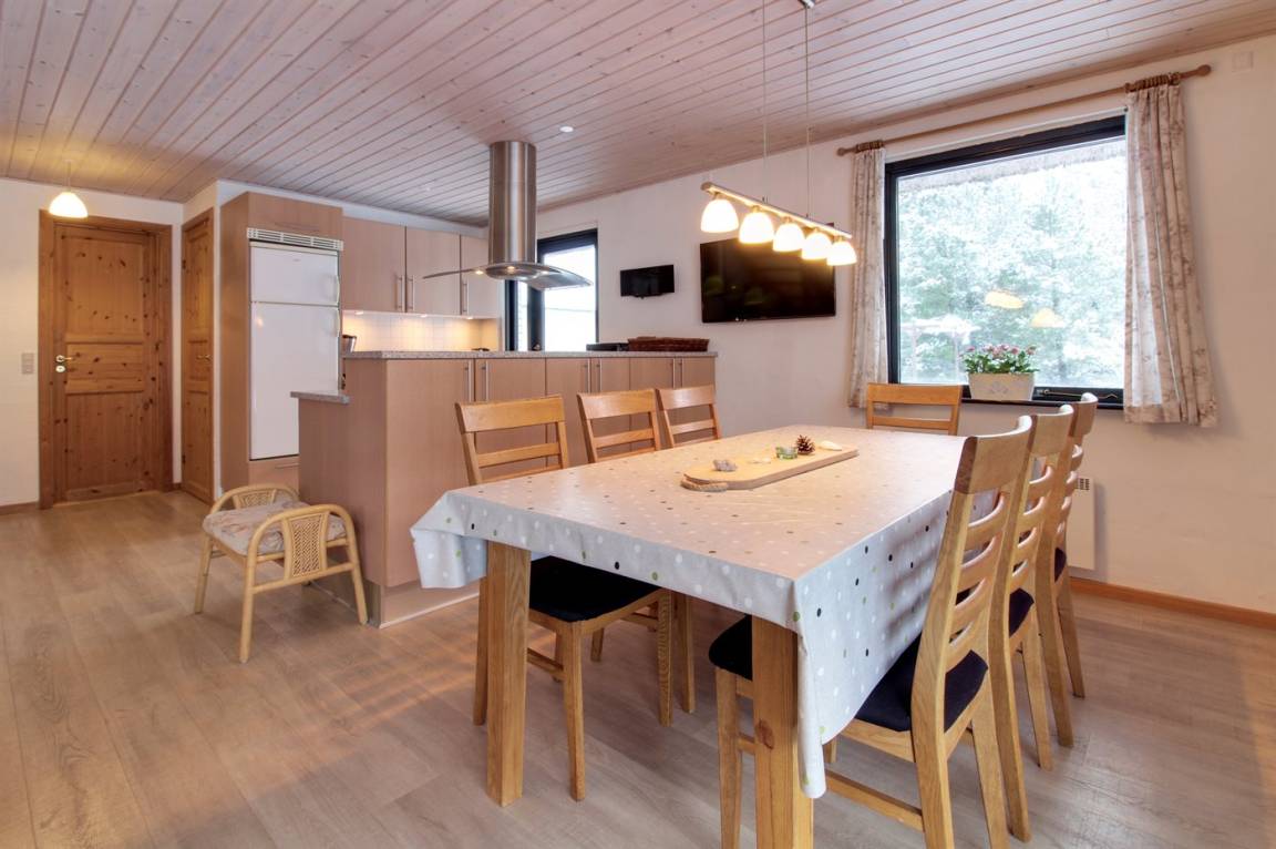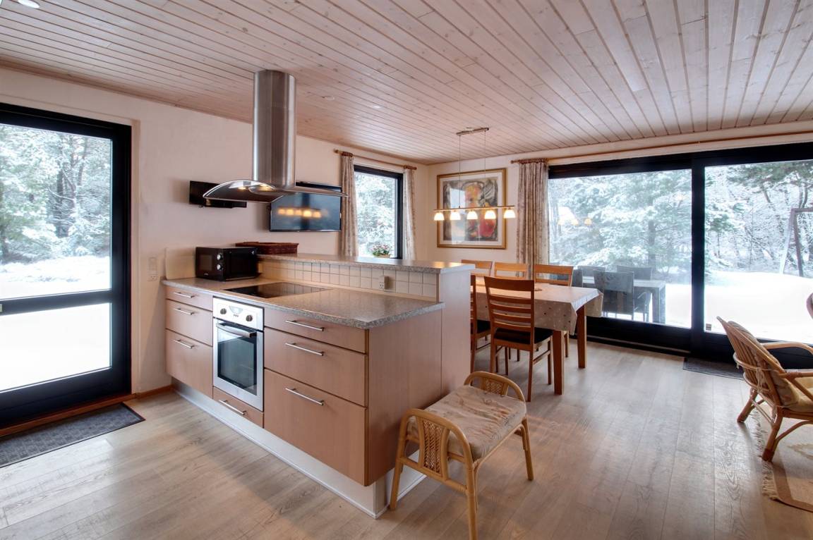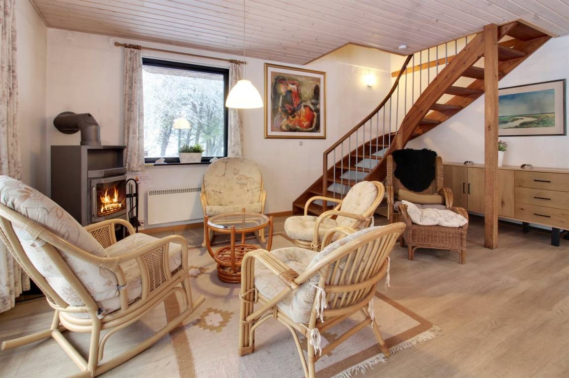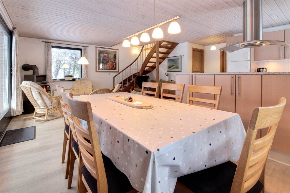 EinrichtungDas Ferienhaus eignet sich für 6 Personen sowie 1 Kleinkind bis zu 3 Jahren. Die Ferienunterkunft hat eine Wohnfläche von 135 m², ist 2-stöckig, und wurde 1969 gebaut. 2006 wurde die Ferienunterkunft renoviert. Haustiere dürfen nicht mitgebracht werden. Die Ferienunterkunft ist mit einer energiefreundlichen Luft-Luft-Wärmepumpe ausgestattet. Die Ferienunterkunft ist mit Waschmaschine ausgestattet. Wäschetrockner. Tiefkühlmöglichkeit mit 160 Liter Nutzinhalt. Es gibt außerdem einen Kaminofen. Für die jüngsten Feriengäste ist 1 Kinderhochstuhl vorhanden.