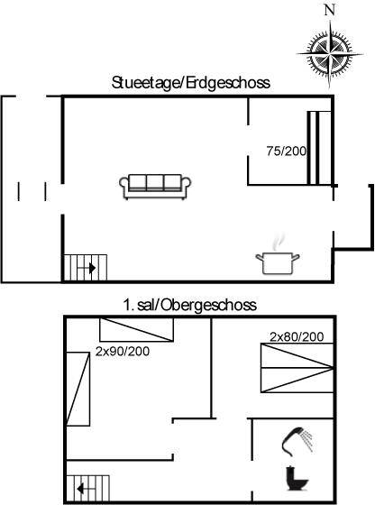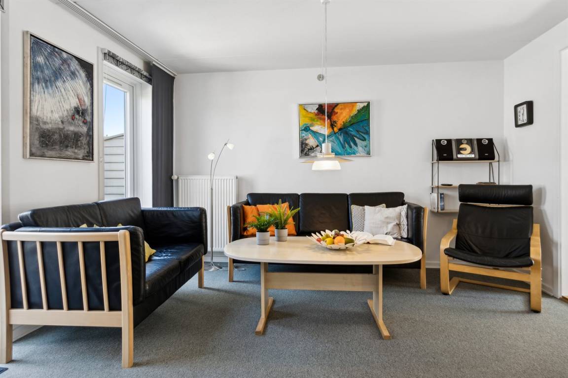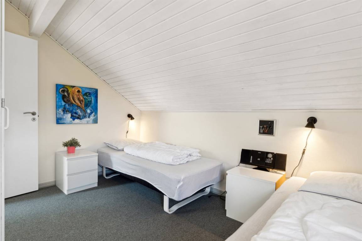 Diese nette, 2-stöckige Ferienwohnung, 1987 gebaut und 2006 modernisiert, liegt in der Ferienanlage RIM. Zur Wohnung gehört ein offenes Terrassenareal mit Gartenmöbeln und Kugelgrill. Badezimmer mit Dusche und Waschmaschine im Obergeschoss. Die Küche, die mit u. a. Geschirrspüler, Mikrowelle, Umluftofen und Herd mit Ceran-Feld ausgestattet ist, liegt in offener Verbindung mit dem Wohnzimmer. Im Wohnzimmer finden Sie TV, Gemeinschaftsantenne, DVD-Spieler, CD-Spieler sowie Zutritt zur Terrasse. Ferner kostenlose, kabellose Internetverbindung vorhanden (Computer ist mitzubringen). Die Schlafplätze verteilen sich auf 2 Zimmer im Obergeschoss: 1 mit Doppelbett und 1 mit 2 Einzelbetten sowie 1 Zimmer mit Etagenbett im Erdgeschoss. Für die jüngsten Feriengäste stehen Kinderbett und Kinderhochstuhl zur Verfügung. In der Ferienanlage gibt es viele Aktivitätsmöglichkeiten sowie gemeinsame Sauna und gemeinsamen Swimmingpool.