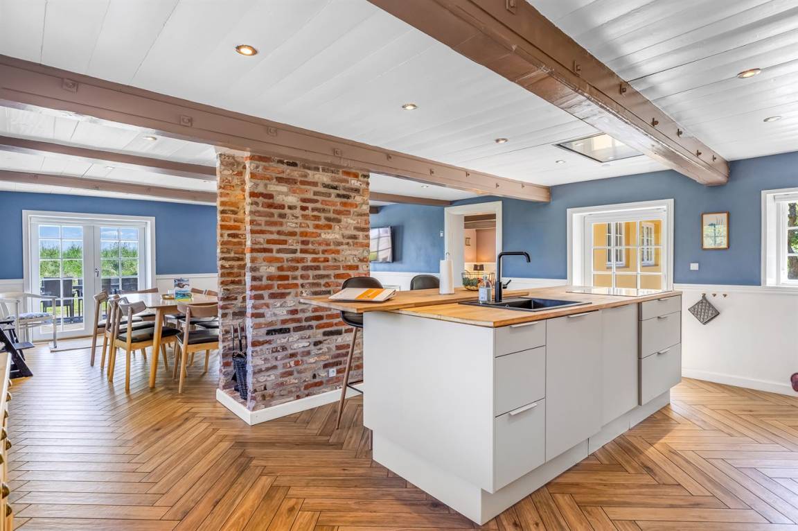 Die Ferienunterkunft, wurde 1675 erbaut und verfügt über eine Wohnfläche von 365 m², die sich auf 2 Etagen verteilt. 2019 wurde die Ferienunterkunft komplett renoviert und besticht nun mit einer hellen und geschmackvollen Ausstattung, unter anderem mit Panoramafenstern Richtung Wattenmeer. Das Haus ist gemütlich und stilvoll eingerichtet. Die Ferienunterkunft ist mit einer energiesparenden Wärmepumpe und Fliesenböden mit Fußbodenheizung ausgestattet. Zudem gibt es einen Kamin.