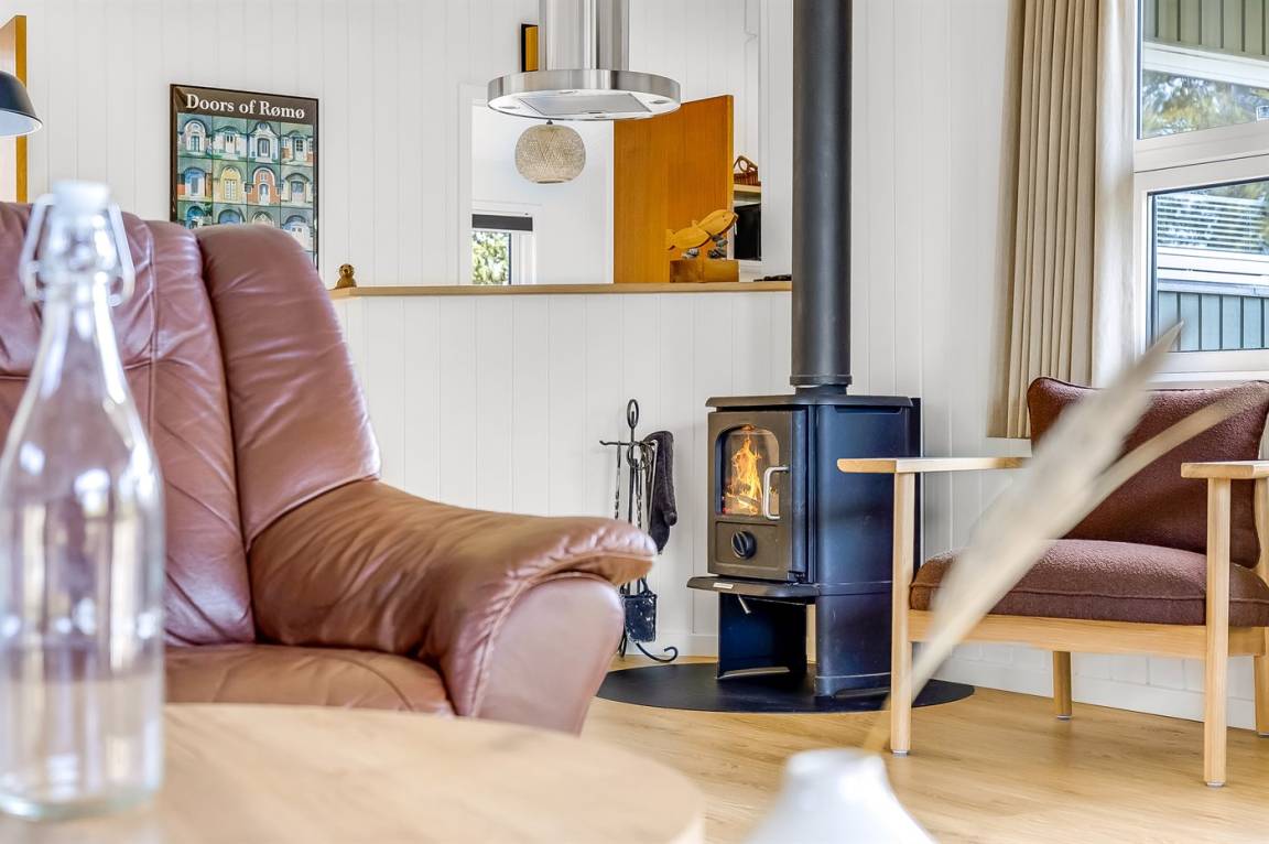 Das nette und gemütlich eingerichtete Wohnzimmer, mit Zugang zur Terrasse, hat Kaminofen, TV mit Satellitenanschluss, Chromecast, DVD-Spieler und Bluetooth-Lautsprecher.
