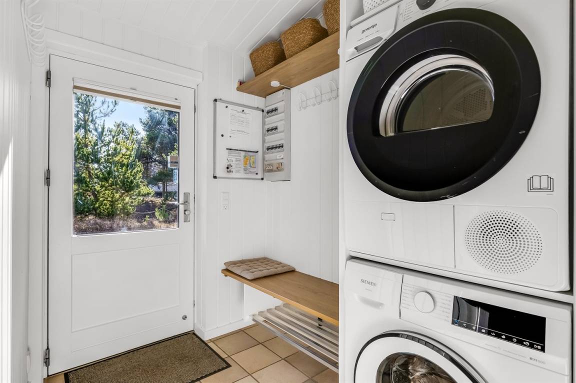 Es gibt einen gut eingerichteten Hauswirtschaftsraum mit Waschmaschine und Wäschetrockner.