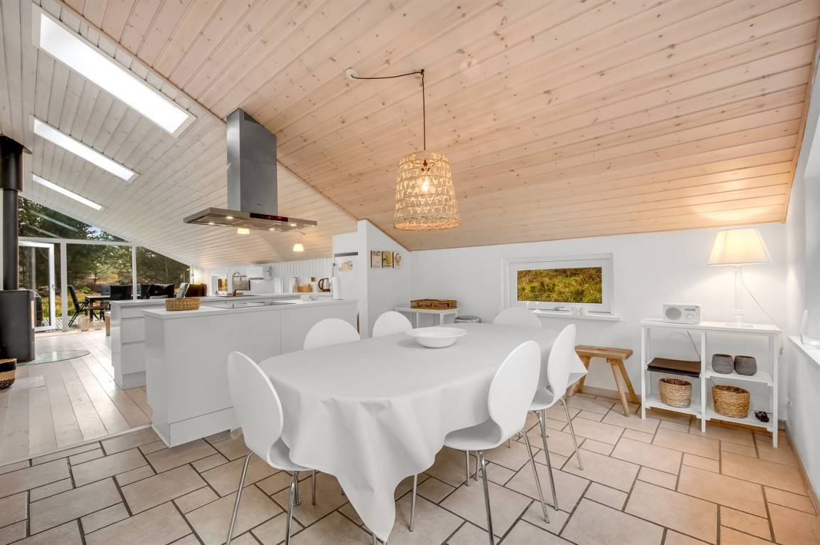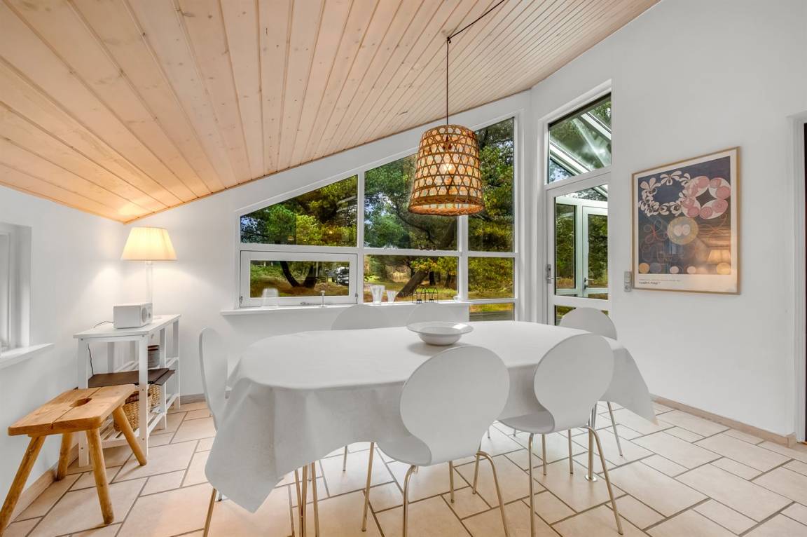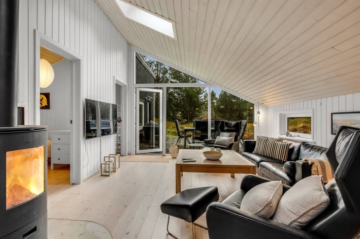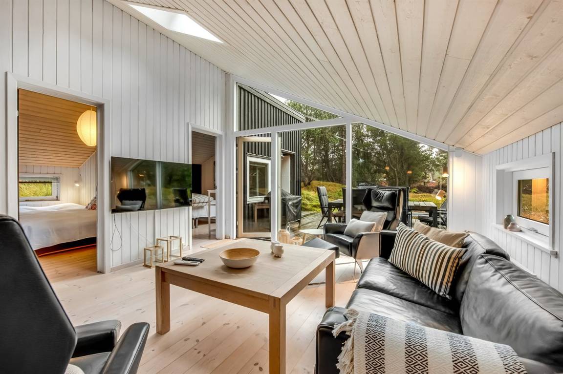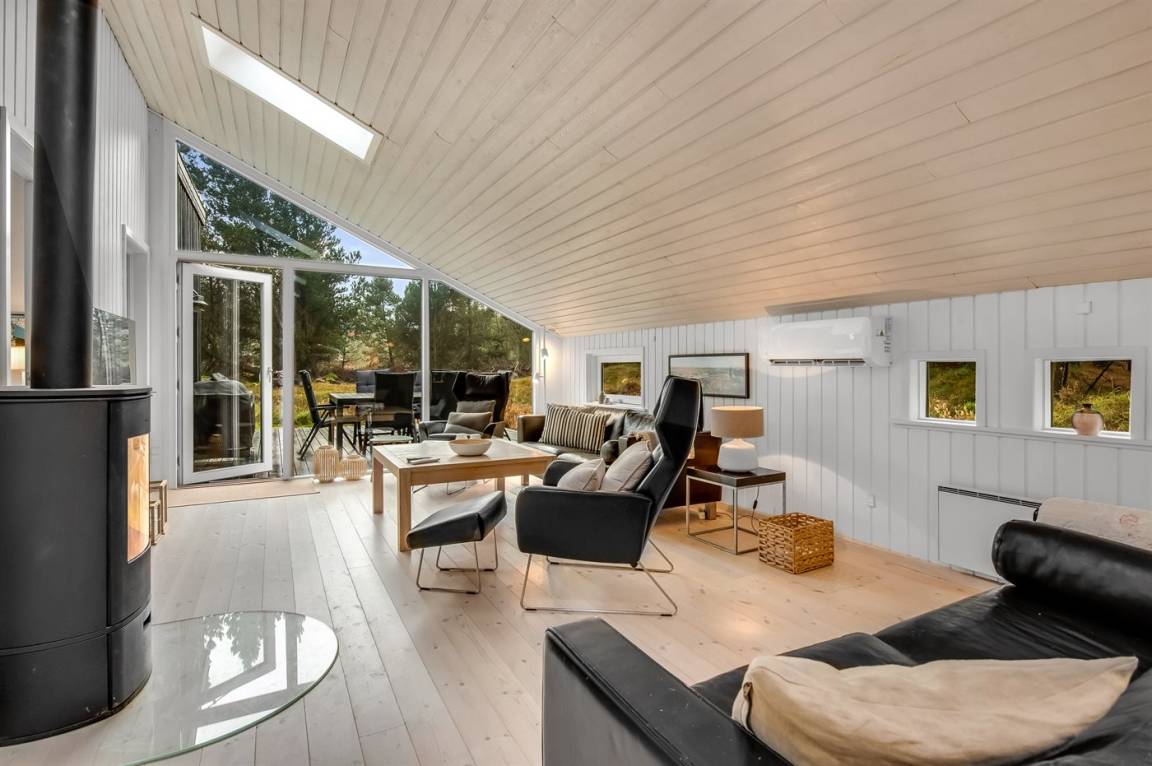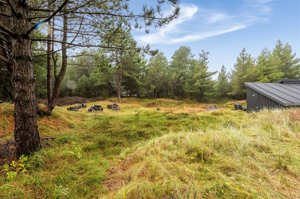 Das Ferienhaus liegt auf einem leicht hügeligen Naturgrundstück mit Heidekraut und Platz für Ballspiele und andere Aktivitäten im Freien. Das Haus liegt in einer ruhigen Gegend in der Nähe von Pfade und Radwege, die hinunter zum Strand und zum Lakolk-Einkaufszentrum führen, wo es Restaurants und Einkaufsmöglichkeiten gibt.
