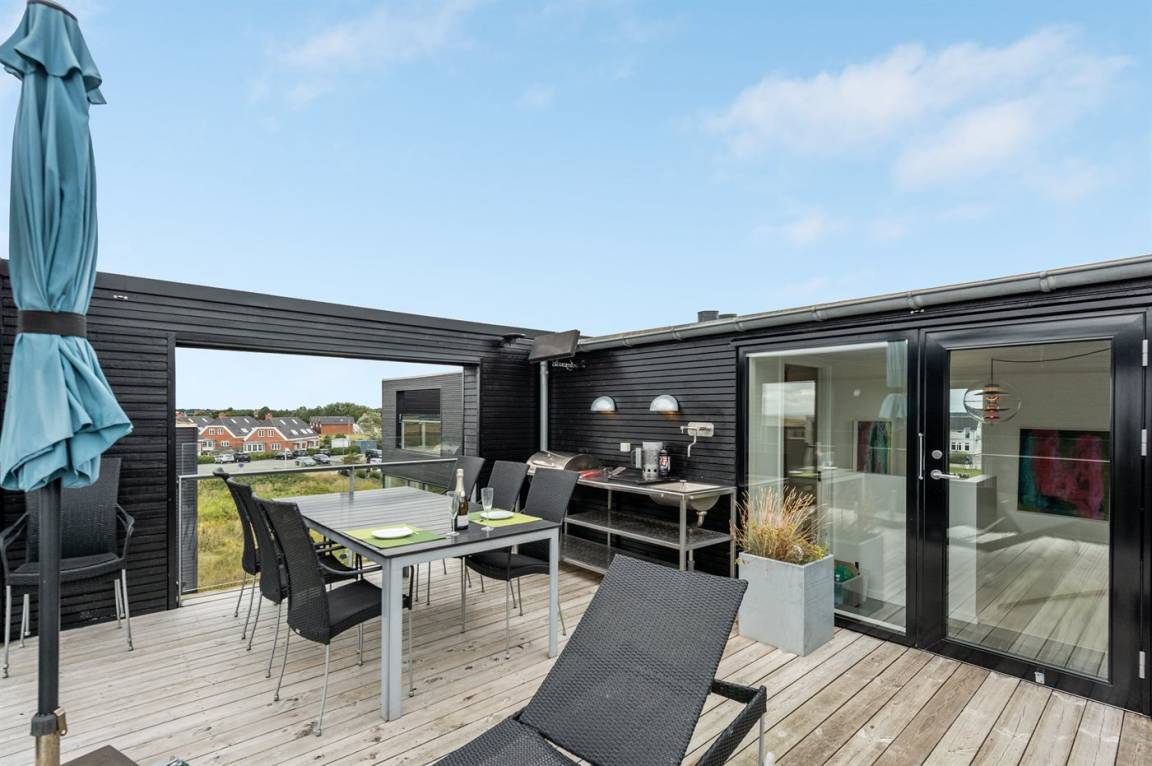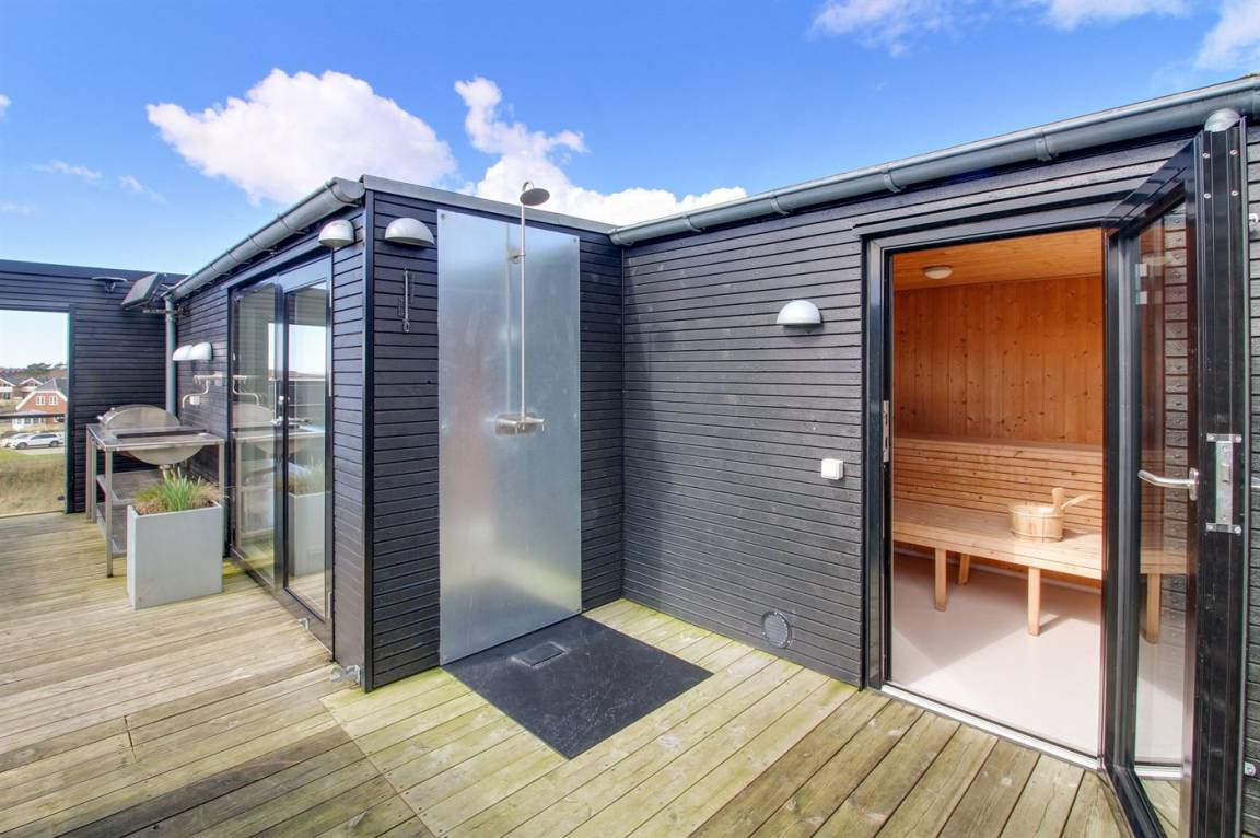 Zum Haus gehört eine teilweise abgeschirmte und überdachte Dachterrasse mit Zugang zu einer Sauna, einem 6-Pers.-Außenwhirlpool und einer Außendusche – die das ganze Jahr hindurch benutzt werden können.Ferner ist das Haus ganzjärig bewohnbar und eignet sich somit für Aufenthalte zu jeder Jahreszeit. Die Heizung erfolgt mit Fernwärme.