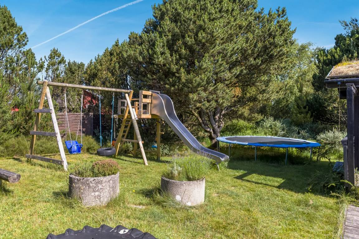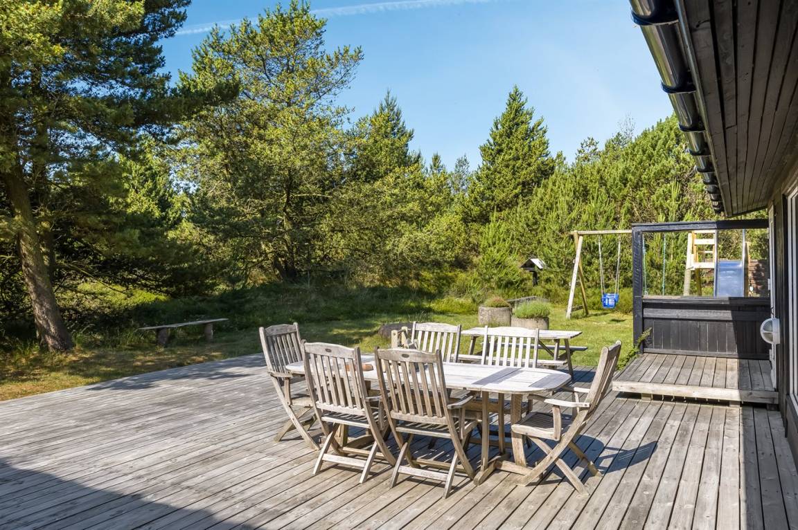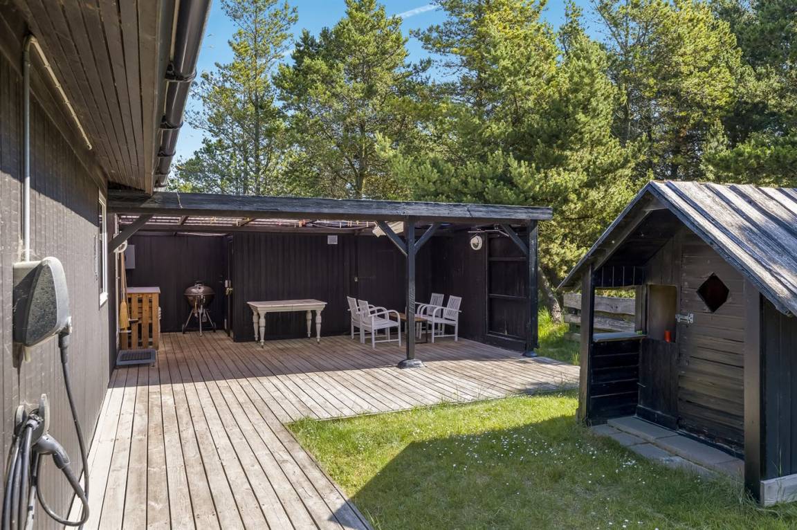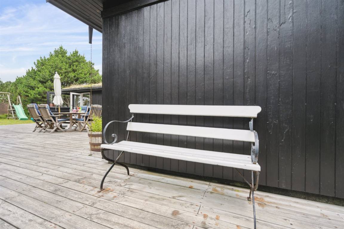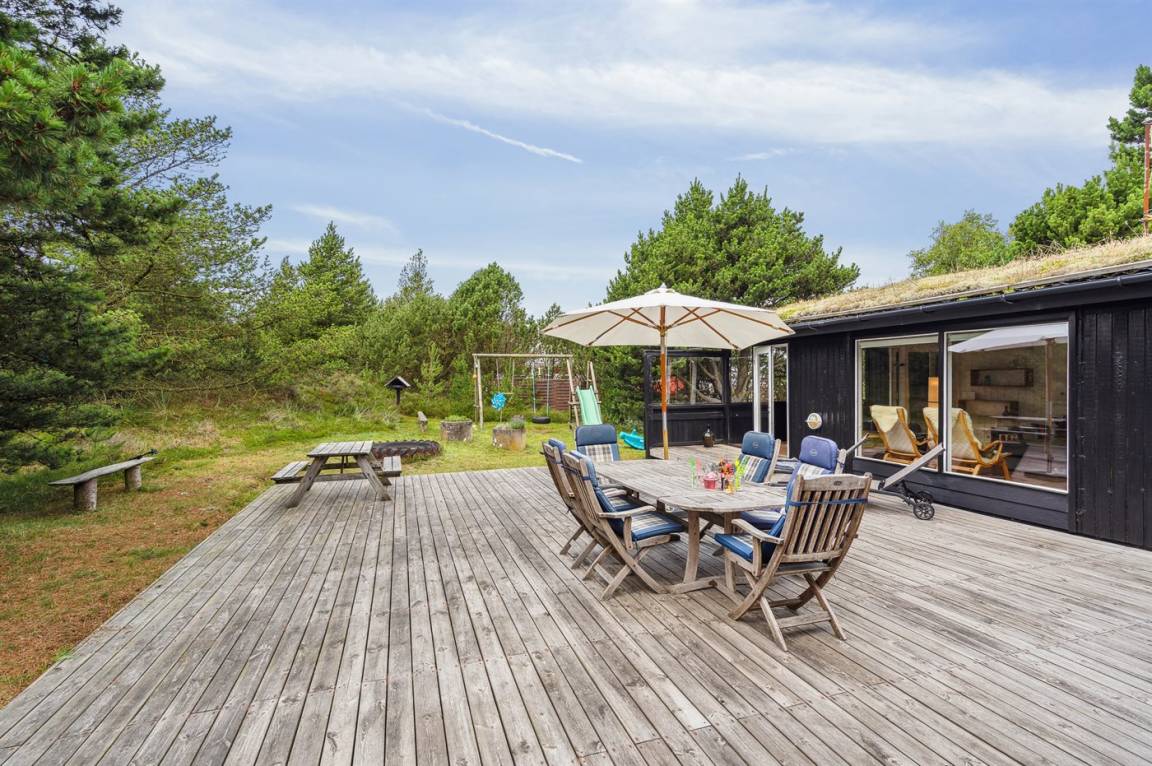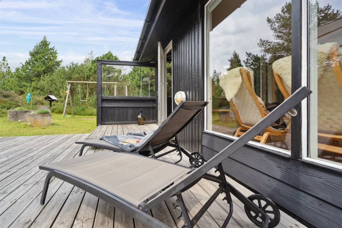 Dieses Ferienhaus wurde 2013 teilweise renoviert und 2018 wurde die Küche erneuert. Das Ferienhaus liegt in einem ruhigen und naturschönen Gebiet, auf einem ungestörten Grundstück, das an ein unter Naturschutz stehendes Gelände angrenzt. Angler können ihr Glück im Angelsee in Toftum versuchen. Außer Schaukel, Sandkasten und Rutsche gibt es einen Schwebebalken auf dem Grundstück. Es gibt eine große, teilweise überdachte Terrassenfläche mit Gartenmöbeln. Es besteht die Möglichkeit einen Hundezaun aufzustellen, so entsteht ein ungefähr 60 m² großes Hundegehege, von dem die Hälfte überdacht ist. Über 50 deutsche TV-Programme.