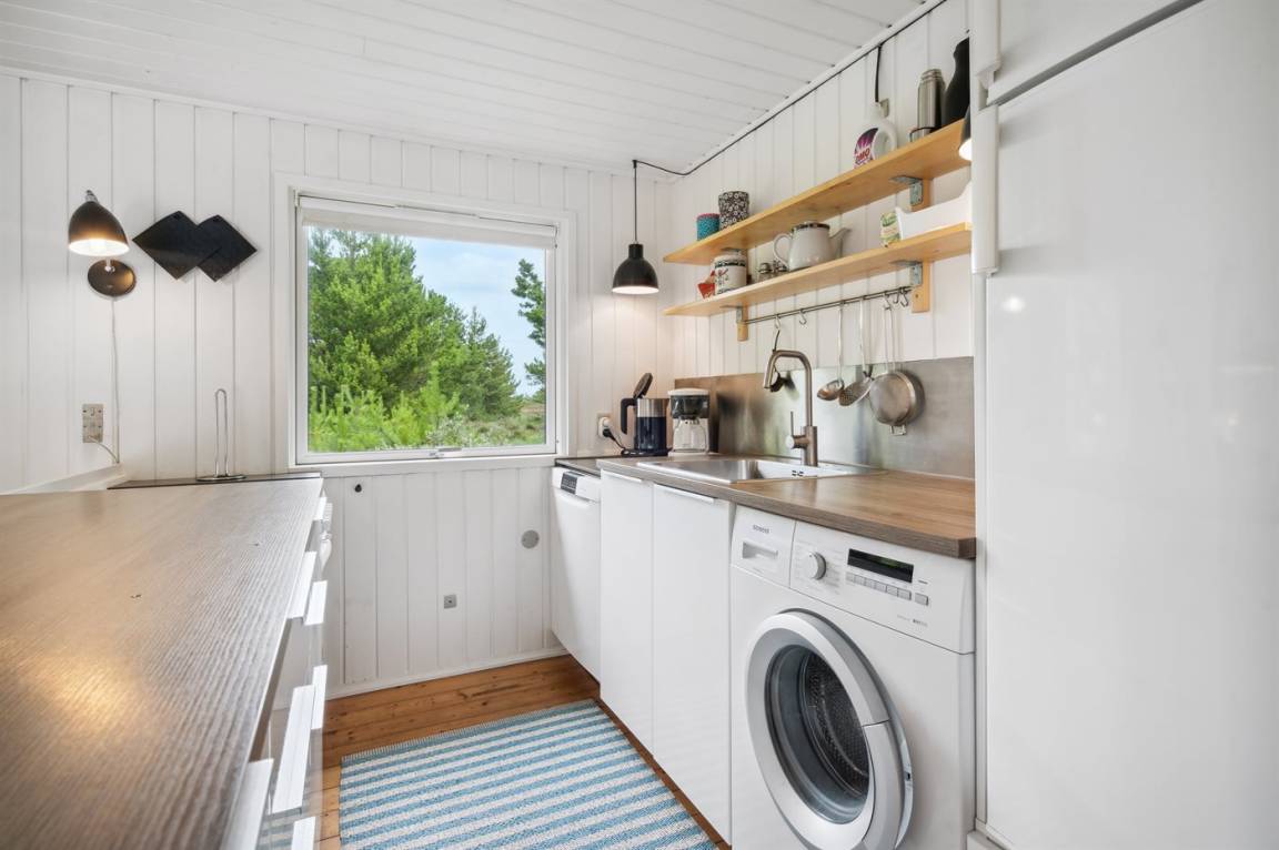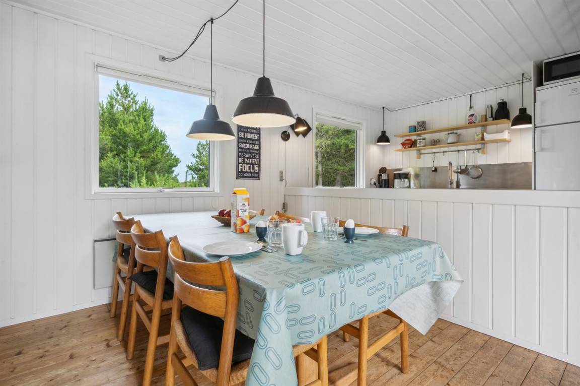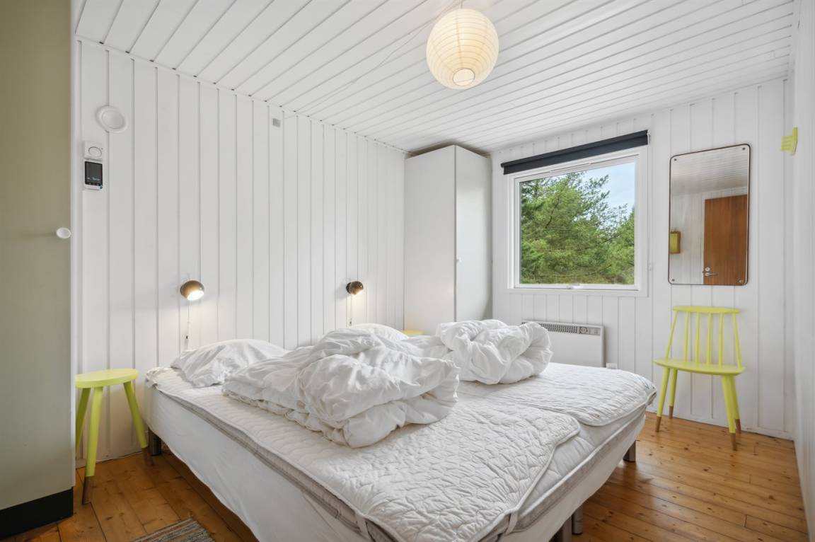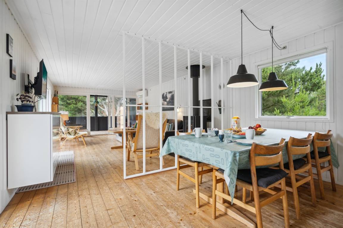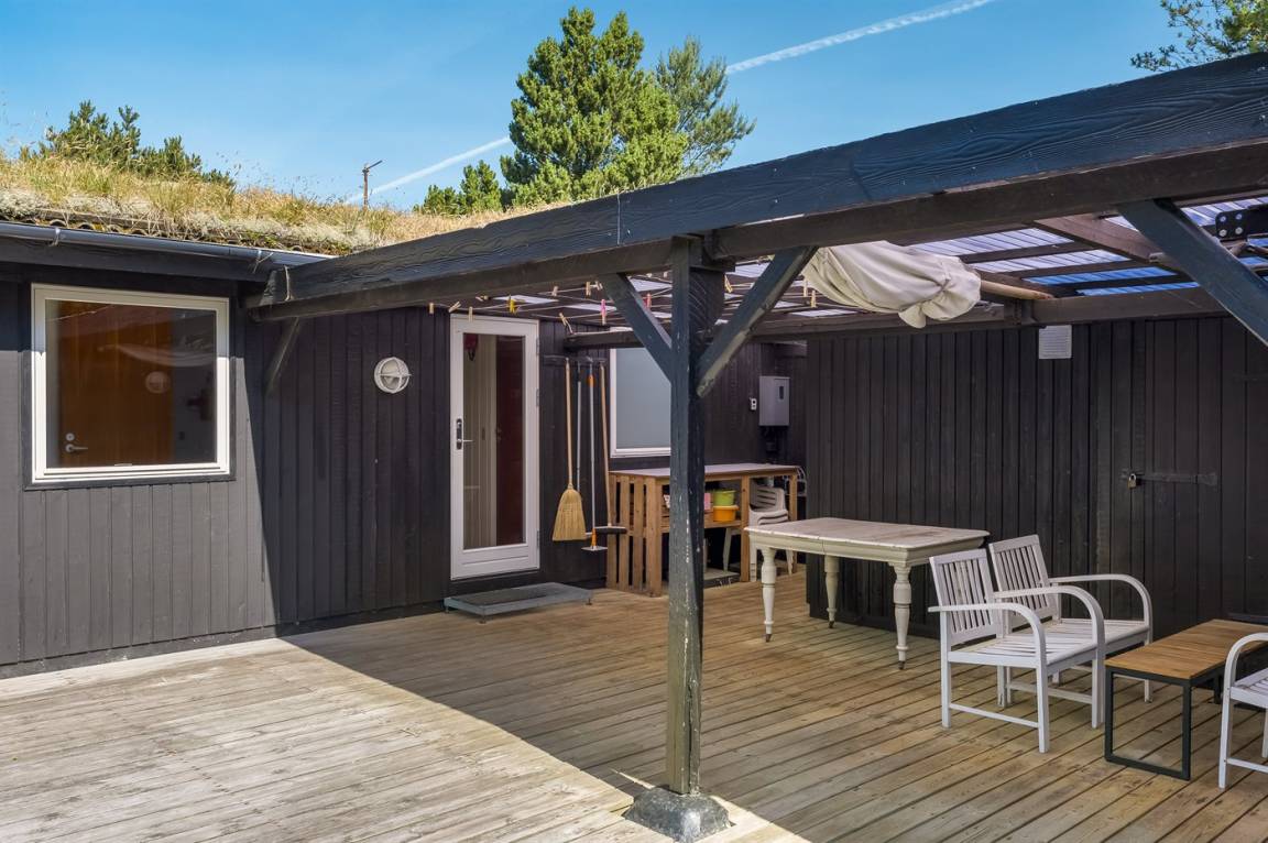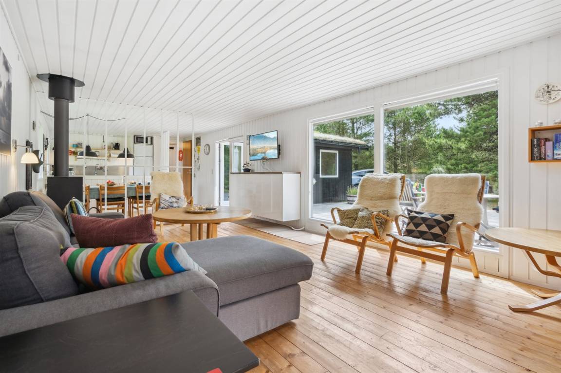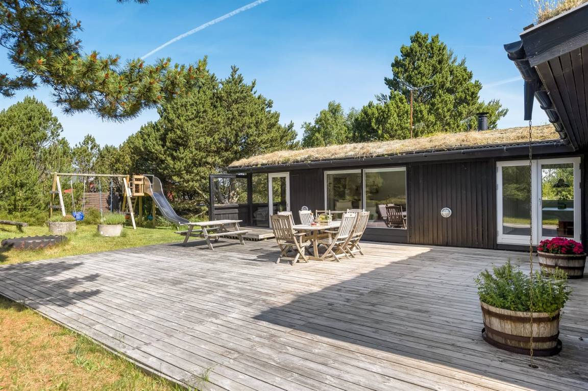Dieses Ferienhaus wurde 2013 teilweise renoviert und 2018 wurde die Küche erneuert. Das Ferienhaus liegt in einem ruhigen und naturschönen Gebiet, auf einem ungestörten Grundstück, das an ein unter Naturschutz stehendes Gelände angrenzt. Angler können ihr Glück im Angelsee in Toftum versuchen. Außer Schaukel, Sandkasten und Rutsche gibt es einen Schwebebalken auf dem Grundstück. Es gibt eine große, teilweise überdachte Terrassenfläche mit Gartenmöbeln. Es besteht die Möglichkeit einen Hundezaun aufzustellen, so entsteht ein ungefähr 60 m² großes Hundegehege, von dem die Hälfte überdacht ist. Über 50 deutsche TV-Programme.