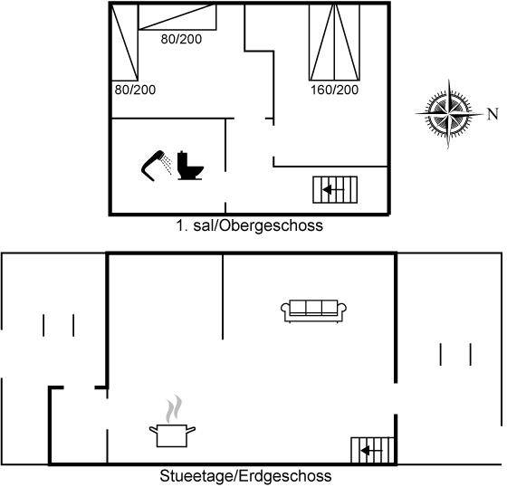 SchlafverhältnisseDie Schlafplätze verteilen sich auf 2 Schlafräume. 2 Schlafplätze in einem Doppelbett. 2 Schlafplätze in Einzelbetten.