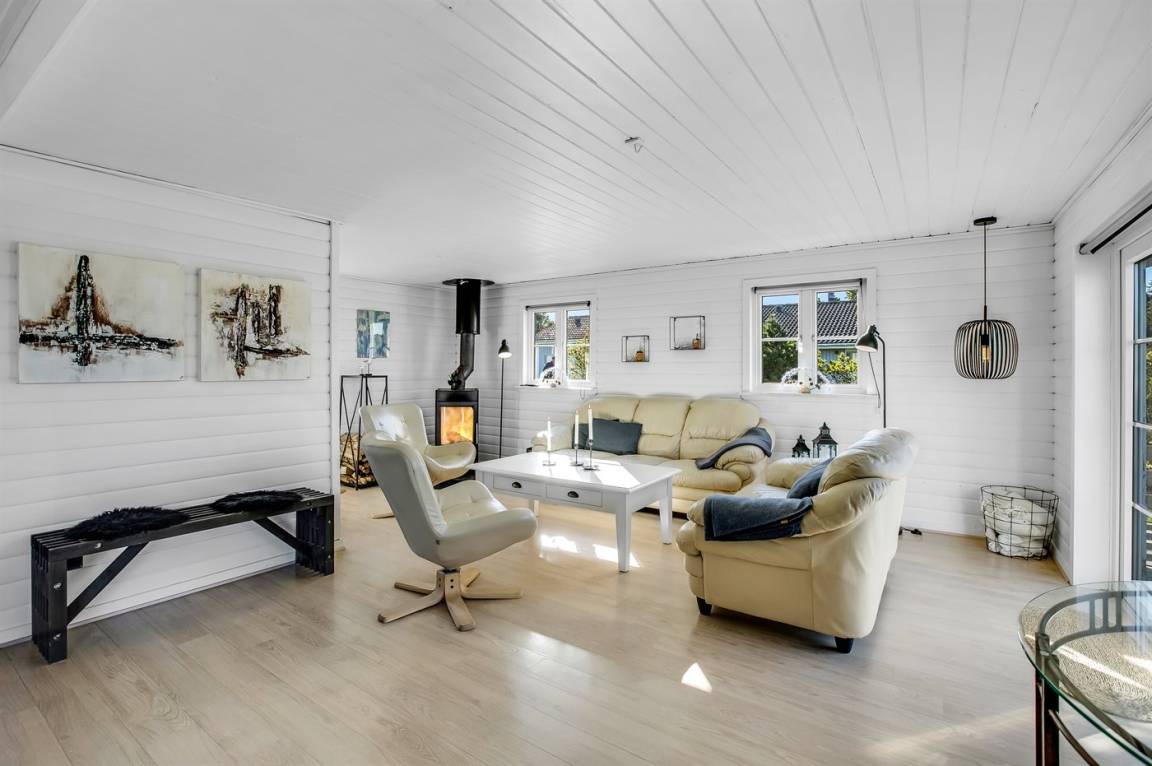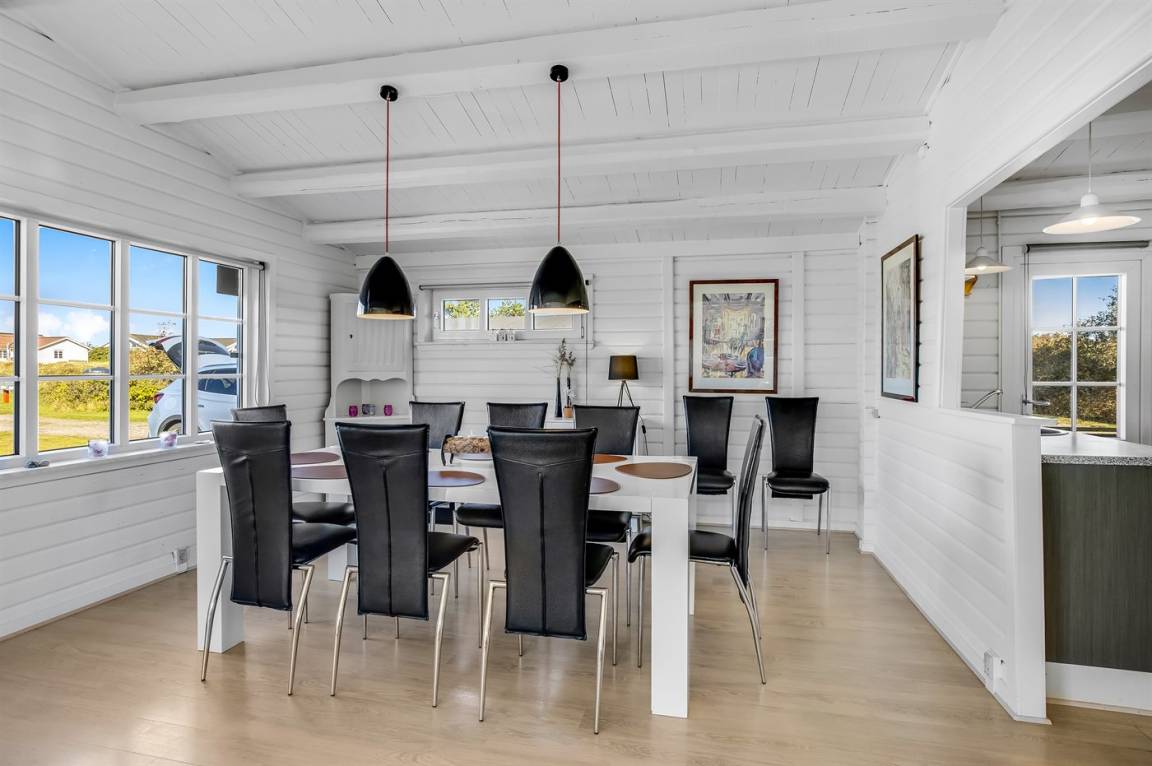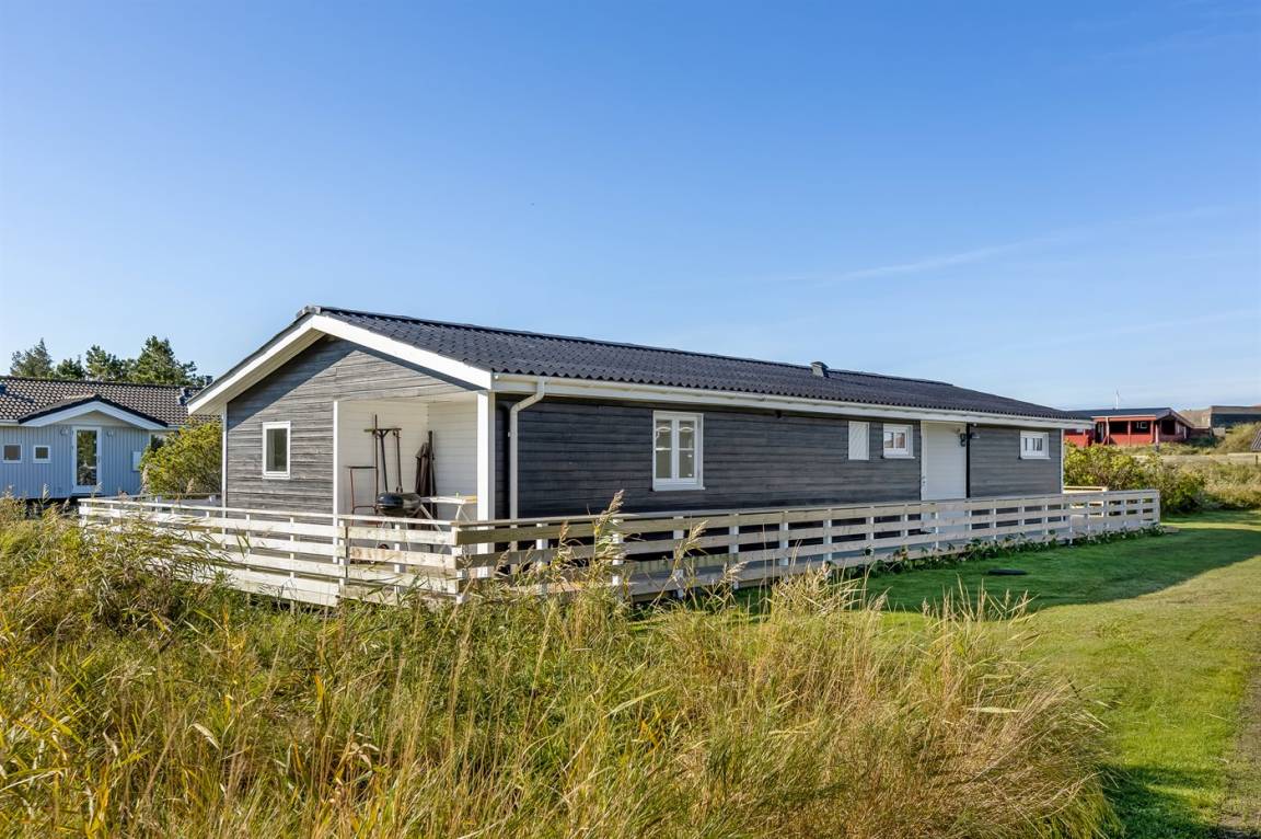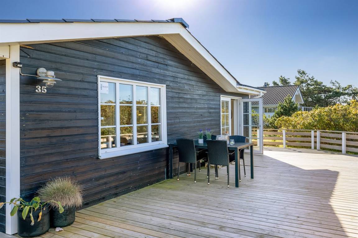 Nur 500 m vom schönen Strand entfernt finden Sie dieses hübsche Ferienhaus, das von einem schönen, großen und teilweise überdachten Terrassenareal umgeben ist.