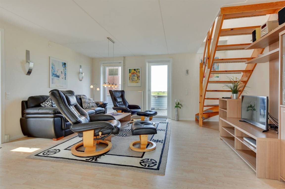 In der Ferienanlage RIM liegt diese moderne, gut eingerichtete, 2-stöckige Wohnung, 1987 gebaut und 2005 modernisiert. Zur Wohnung gehört ein offenes Terrassenareal mit Gartenmöbeln. Innen gibt es gestrichene Wände und Decken. Die Böden sind mit Holz ausgelegt. Badezimmer mit Duschnische und Waschmaschine. Die schöne Küche ist mit dem Wohnzimmer kombiniert und u. a. mit Geschirrspüler ausgestattet. Im Wohnzimmer finden Sie Flatscreen-TV, Gemeinschaftsantenne und Stereoanlage mit CD-Spieler eingerichtet ist. Ferner kostenlose Internetverbindung vorhanden (Computer ist mitzubringen). 2 Schlafzimmer im Obergeschoss; 1 mit Doppelbett und 1 mit 2 Einzelbetten. Eine schöne Wohnung in der Ferienanlage mit vielen Aktivitätsmöglichkeiten.