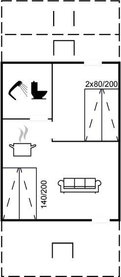 SchlafverhältnisseEs gibt einen Schlafraum. 4 Schlafplätze auf Schlafcouchen (doppel). 2 von diesen Schlafplätzen befinden sich im Wohnzimmer.