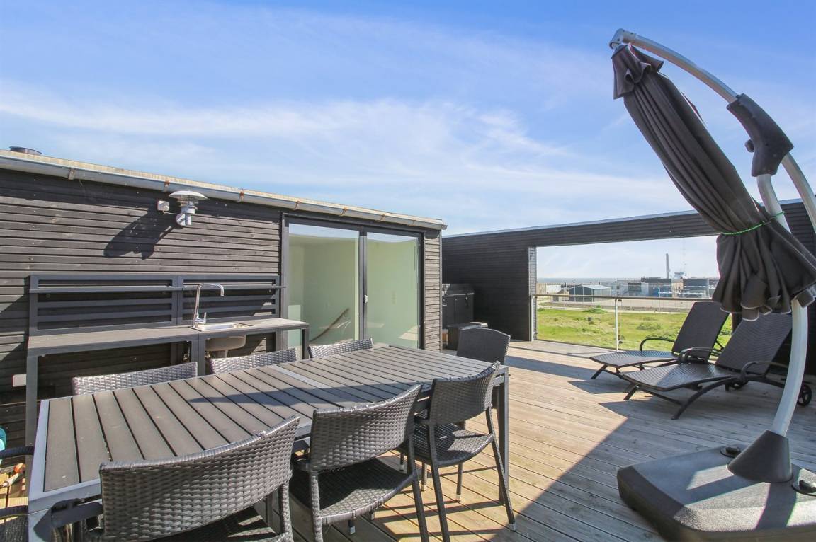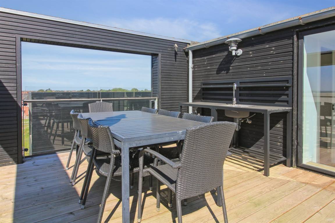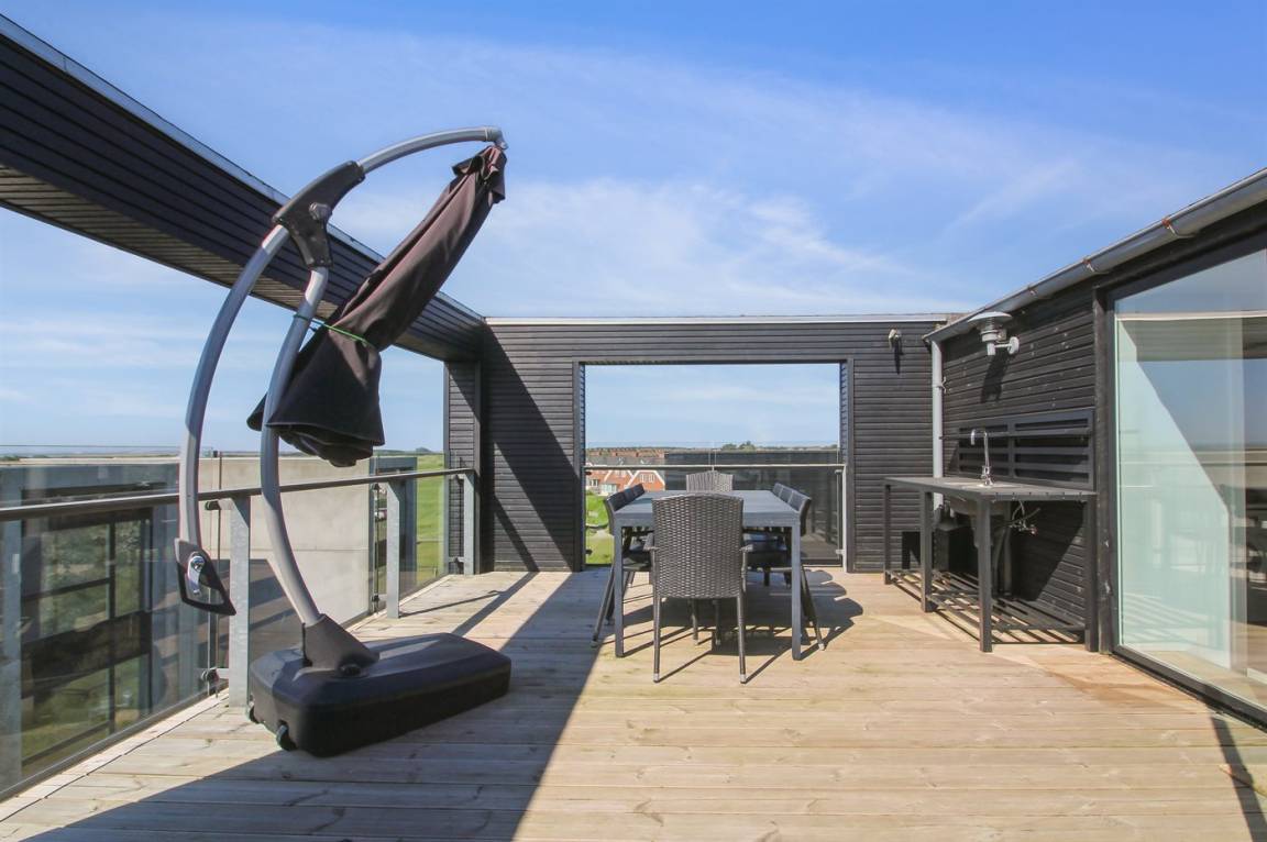 Dieses schöne Ferienhaus mit Meerblick liegt nicht weit vom Wattenmeer und dem Ferienort Havneby entfernt, wo es Einkaufsmöglichkeiten, Restaurants und einen Golfplatz gibt. Die Wohnfläche des Hauses verteilt sich auf drei Etagen, und auf der teilweise abgeschirmten Dachterrasse gibt es einen schönen Außen-Whirlpool, der das ganze Jahr über zur Verfügung steht.