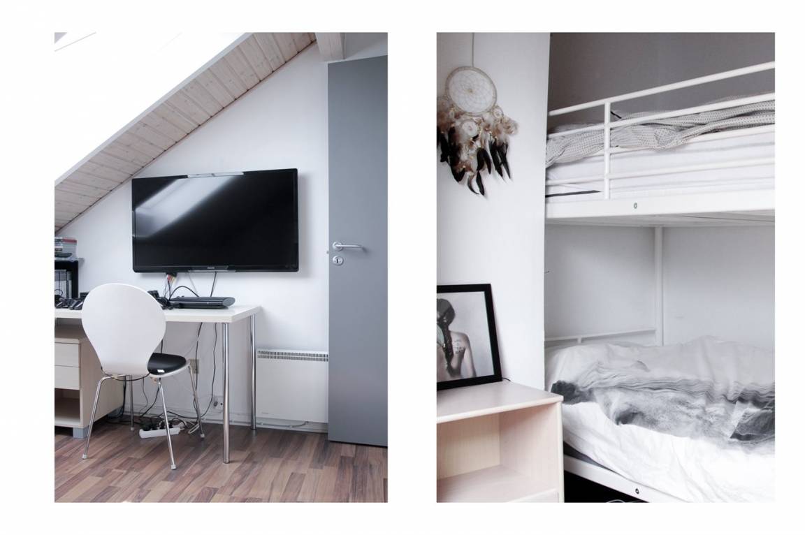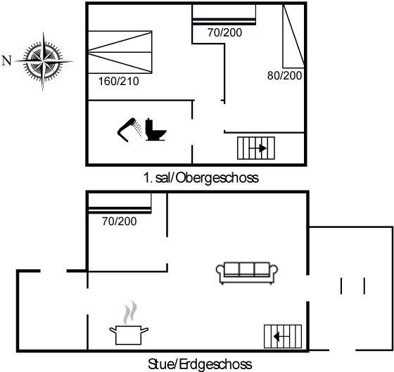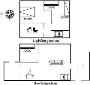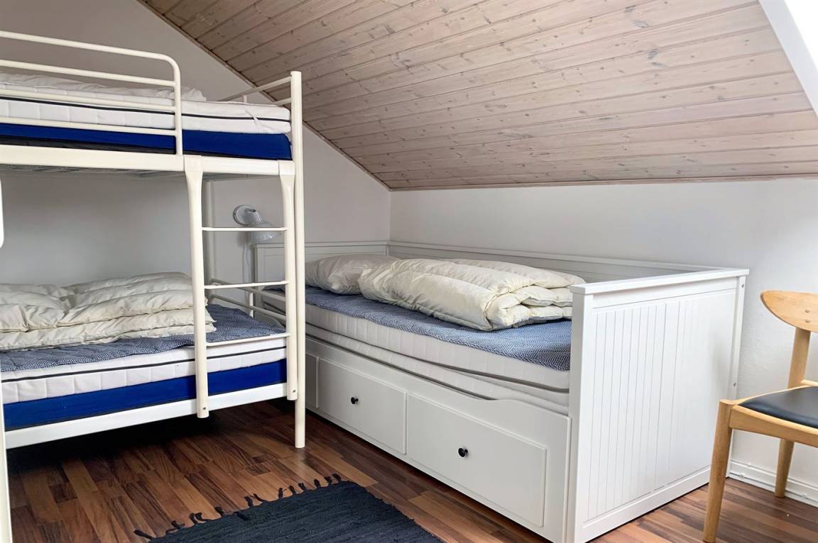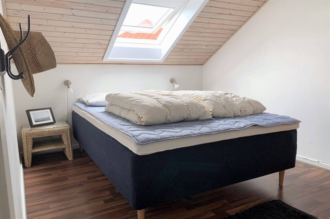 Die Wohnung ist mit einer kleinen Diele eingerichtet - von hier aus haben Sie Zutritt zur Küche und zum Wohnzimmer. Vom Wohnzimmer haben Sie Zutritt zu dem Schlafzimmer mit Etagenbett und zu der in Richtung Süden gelegenen Terrasse. Ein Treppe führt vom Wohnzimmer ins Obergeschoss. Hier finden Sie das Badezimmer mit Duschnische und Waschmaschine (8 kg) und 2 Schlafzimmer mit Verdunkelungsgardinen. Das eine ist mit Doppelbett und Flatscreen-TV und das andere mit Etagenbett, Einzelbett, Flatscreen-TV und PS3 eingerichtet. Ferner steht ein Kinderbett zur Verfügung.