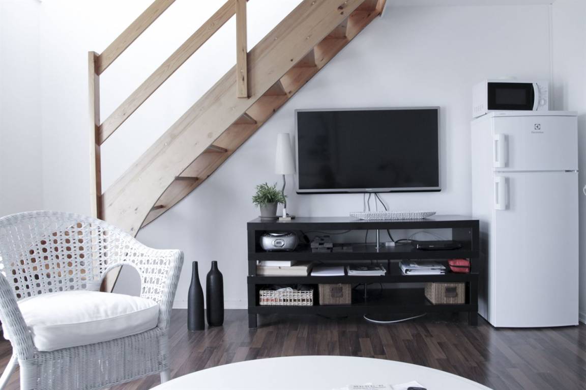 Das Wohnzimmer ist mit Flatscreen-TV, Blu-Ray-/DVD-Player ausgestattet. Es können mindestens 4 deutsche und mindestens 4 dänische sowie 1-3 schwedische und 1-3 norwegische Fernsehsender empfangen werden. Kostenlose, kabellose Internetverbindung (25 Mbit download/upload).
