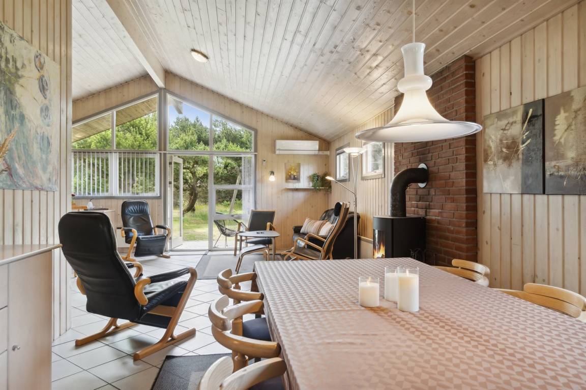 EinrichtungDas Ferienhaus eignet sich für 8 Personen sowie 1 Kleinkind bis zu 3 Jahren. Die Ferienunterkunft hat eine Wohnfläche von 109 m² und wurde 1993 gebaut. 2004 wurde die Ferienunterkunft teilweise renoviert. Es ist erlaubt 1 Haustier mitzubringen. Die Ferienunterkunft ist mit Waschmaschine ausgestattet. Wäschetrockner. Tiefkühlmöglichkeit mit 40 Liter Nutzinhalt. Es gibt außerdem einen Kaminofen. Für die jüngsten Feriengäste ist 1 Kinderhochstuhl vorhanden.