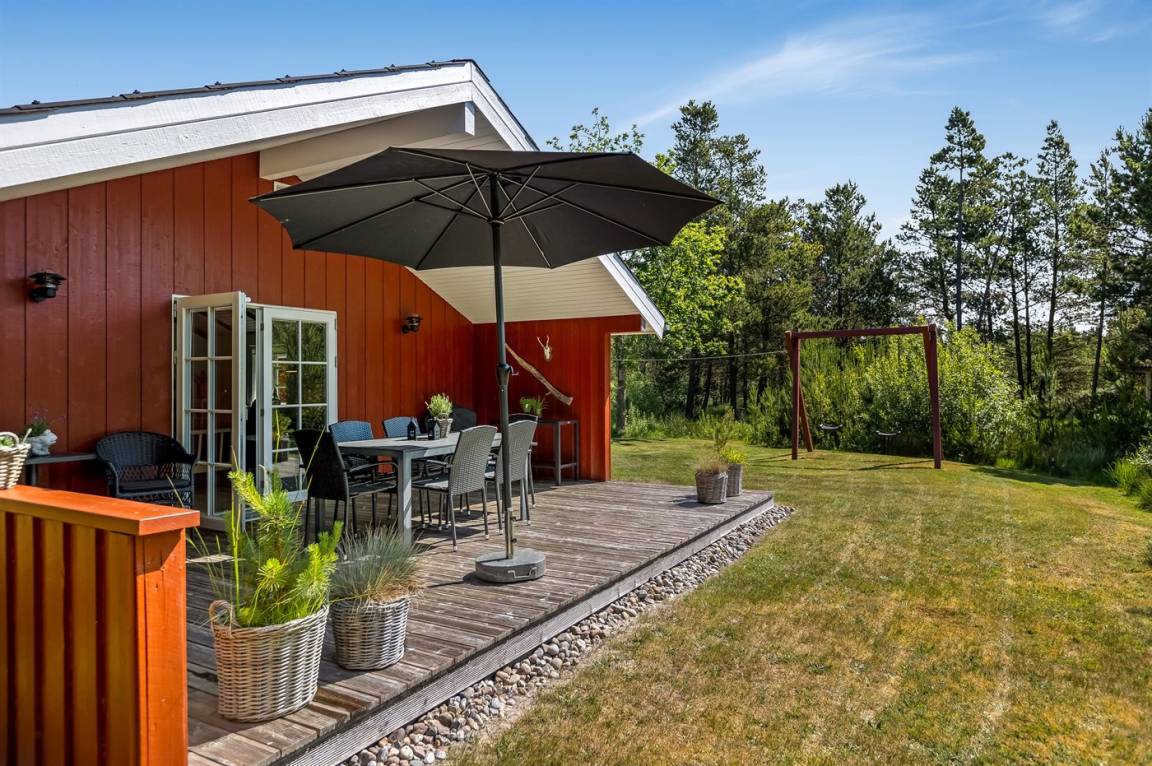 DraußenDie Ferienunterkunft liegt auf einem 2595 m² großen Naturgrundstück. Die Entfernung zum Meer beträgt 2700 m. Die nächste Einkaufsmöglichkeit liegt 2000 m entfernt. Es steht ein 13 m² Terrassenareal zur Verfügung. Außerdem gibt es 13 m² überdachte Terrasse. Geräteraum. Schaukel. Es steht ein Grill zur Verfügung. Es ist ein Ladestecker für Elektroautos installiert. Ladestecker Typ 2. Parkplatz auf dem Grundstück.
