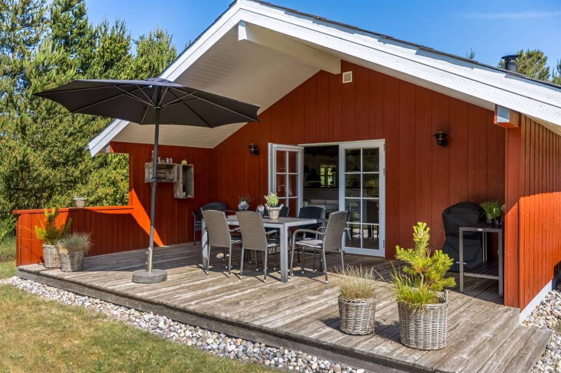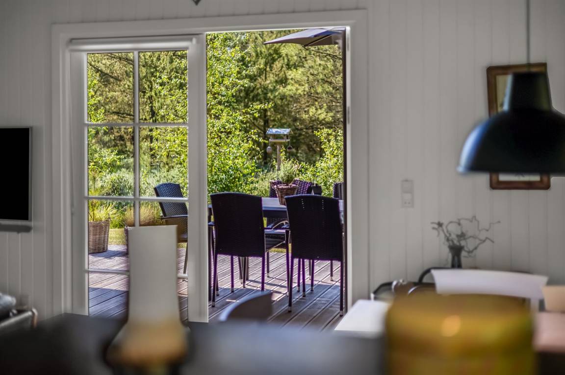 Dieses schöne Ferienhaus liegt aud einem schönen, großen Naturgrundstück mit Bäumen am Ende einer Sackgasse.
