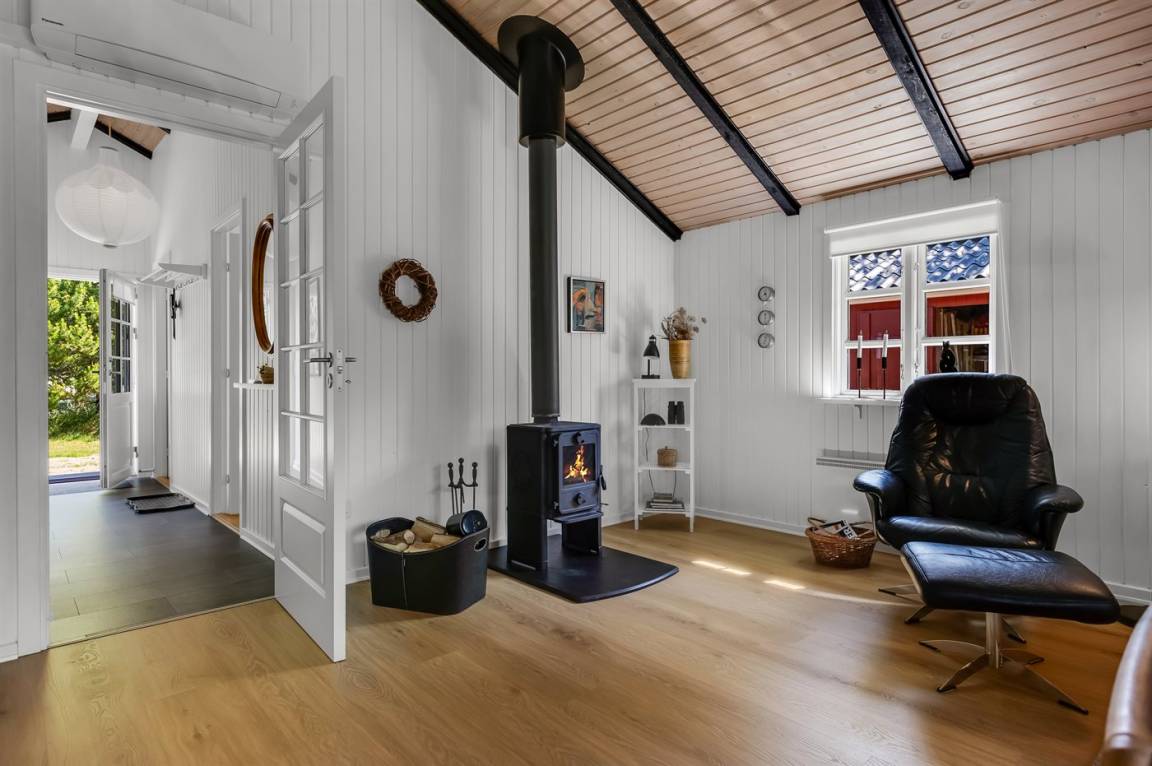 EinrichtungDas Ferienhaus eignet sich für 4 Personen. Die Ferienunterkunft hat eine Wohnfläche von 68 m² und wurde 1986 gebaut. 2013 wurde die Ferienunterkunft teilweise renoviert. Haustiere dürfen nicht mitgebracht werden. In der Ferienunterkunft ist eine energiesparender Luft zu Luft Wärmepumpe installiert. Die Ferienunterkunft ist mit Waschmaschine ausgestattet. Wäschetrockner. Tiefkühlmöglichkeit mit 130 Liter Nutzinhalt. Es gibt außerdem einen Kaminofen. Für die jüngsten Feriengäste ist 1 Kinderhochstuhl vorhanden.