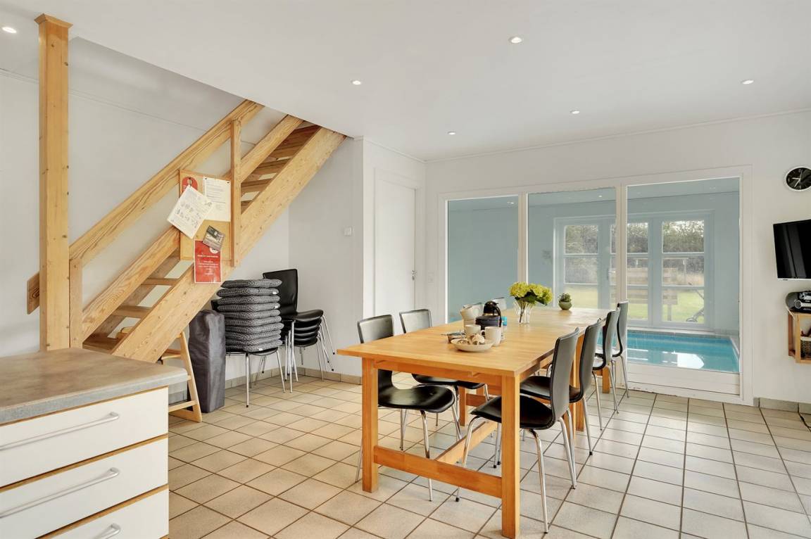 „Prior to the vacation at the holiday home: Ich wurde immer sehr zeitnah über die Sachstände der Buchung informiert The vacation at the holiday home: Das Haus ist genauso, wie es im Internet beschrieben ist. Es ist für 12 Personen eingerichtet, dazu gehören die regulären Betten sowie Essmöglichkeit drinnen und draußen. Leider war unsere Kaffeemaschine kaputt. Wir haben bei Sol og Strand aber sofort eine nagelneue bekommen :) Die Lage ist sehr ruhig, das Grundstück schön groß. Für unsre Kinder (6 und 4 Jahre) gibt es eine Zweierschaukel und eine Sandkiste, die auch viel genutzt wurden. Der Pool ist toll, wenn auch etwas klein für 12 Personen, aber man kann sich ja abwechseln. The local office: Die kaputte Kaffeemaschine wurde sofort mit einem Lächeln ausgetauscht. Ansonsten haben wir das Büro in der Öffnungszeit nicht besucht. Die Schlüsselübergabe über den Code ging reibungslos. Departure and follow up: Den Schlüssel haben wir flott abgeben können. Die Abrechnung erfolgte innerhalb der genannten Zeit. Cleanliness: Grundsätzlich war alles sauber, jedoch befanden sich in einigen Ecken Spinnenweben, die wir aber weggesaugt haben. Das war überhaupt kein Problem. Es passt aber nicht zu dem Preis der Reinigung von 250,00 €. The holiday home itself: Wir haben uns sehr wohl gefühlt. Der Pool war die Hauptattraktion, da es Anfang März noch sehr kalt ist. Zusätzlich befinden sich im Haus noch eine Sauna und ein Whirlpool, die wir aber nicht genutzt haben. Die Zimmer sind optimal angeordnet und ausgestattet. Der große Tisch im Essbereich wurde nicht nur zum Essen sondern auch für Spieleabende genutzt.“