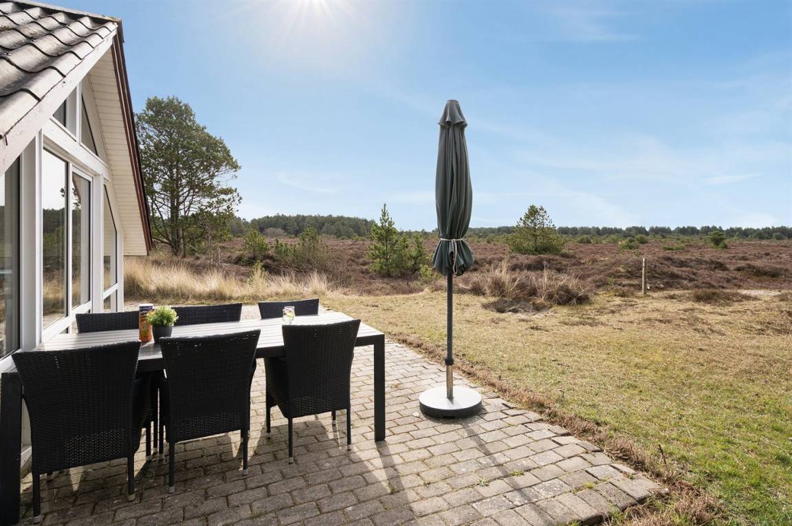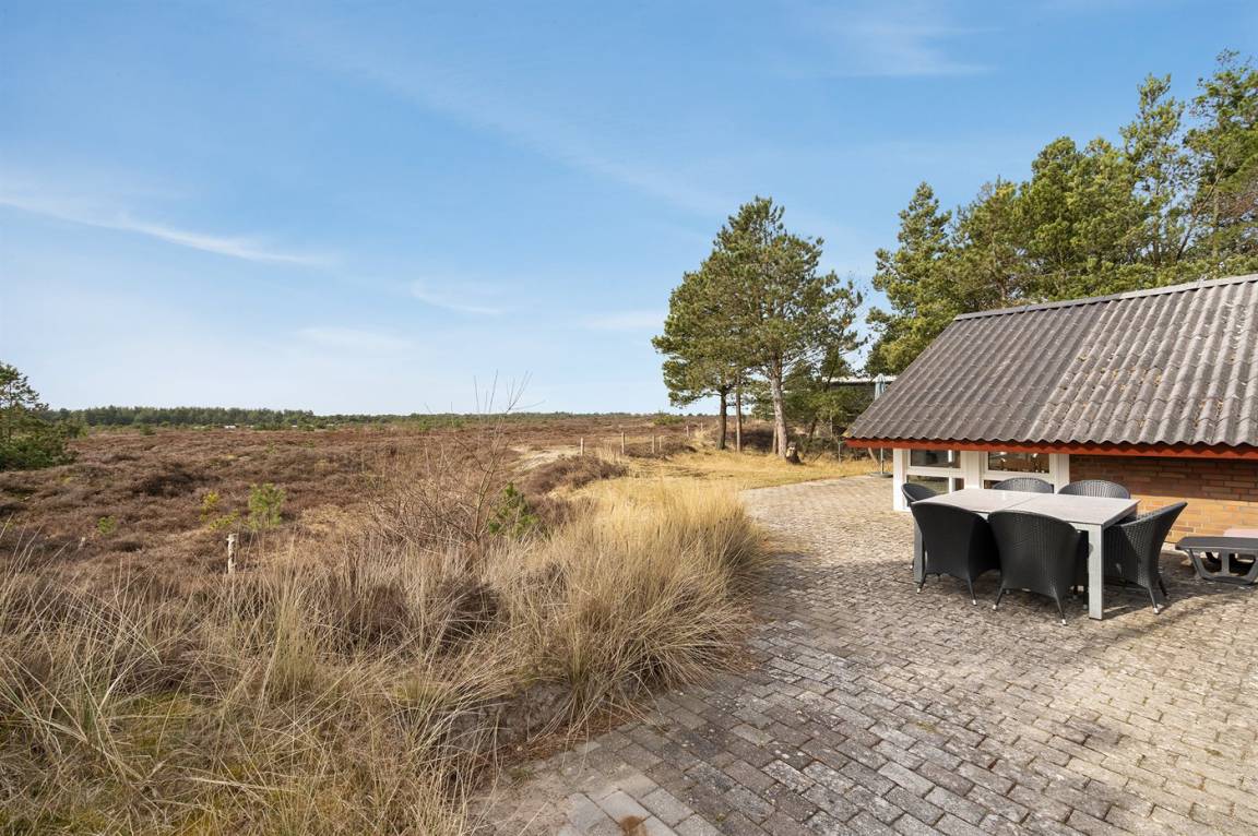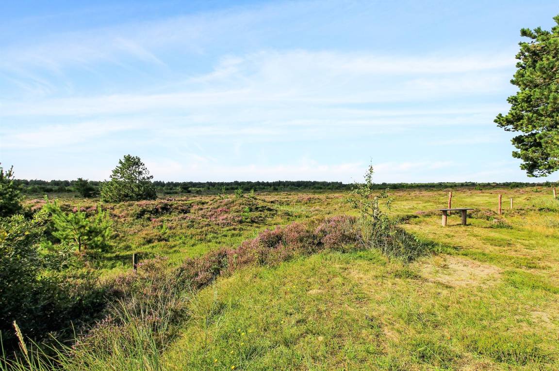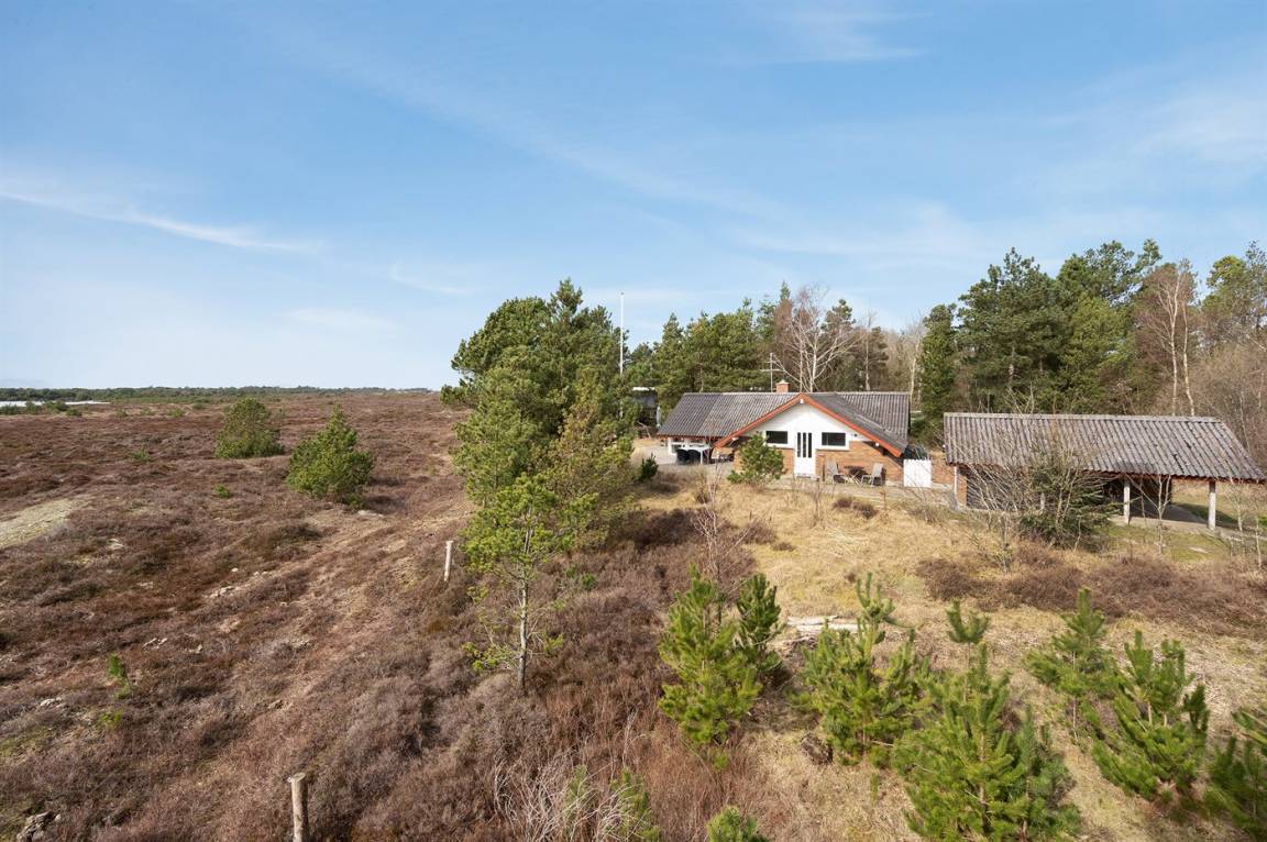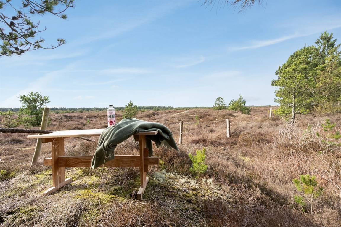 Auf dem 2500 m² großen, ungestörten Grundstück ist reichlich Platz für alle möglichen Aktivitäten. Beispielsweise laden die Gartenmöbel auf einer der vielen Terrassen des Hauses zum Verweilen ein. Das Grundstück ist teilweise von Bäumen umgeben und hat eine tolle Aussicht auf das Naturschutzgebiet. Hinter dem Haus ist eine eingezäunte Wiese, auf der Hunde und Kinder wunderbar spielen können. Im Schuppen sind Outdoor-Spiele für Kinder und Erwachsene vorhanden. Das große Naturgrundstück grenzt direkt an die unter Naturschutz stehende Heidelandschaft an und lässt in der Ferne den Wald und den See erkennen. Schottische Hochlandrinder weiden friedlich in der Heidelandschaft und tauchen oft wenige Meter vor der Terrasse des Hauses auf, um die Gäste zu begrüßen. Sie sind fast zahm und freuen sich sehr über Möhren und Brot. Etwas östlich vom Haus steht eine Aussichtsbank, auf der man sowohl den Sonnenaufgang als auch den Sonnenuntergang genießen kann. Nehmen Sie sich einen Kaffee mit und lassen Sie sich von der traumhaften Aussicht begeistern. Das Haus verfügt über ein Carport und einen Schuppen, in dem Sie einen Grill, Gartenauflagen und andere Gartenausstattung finden.