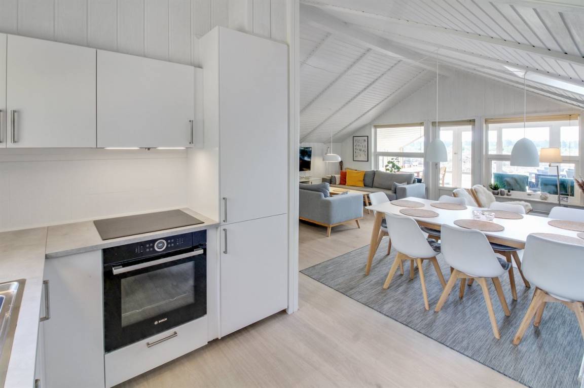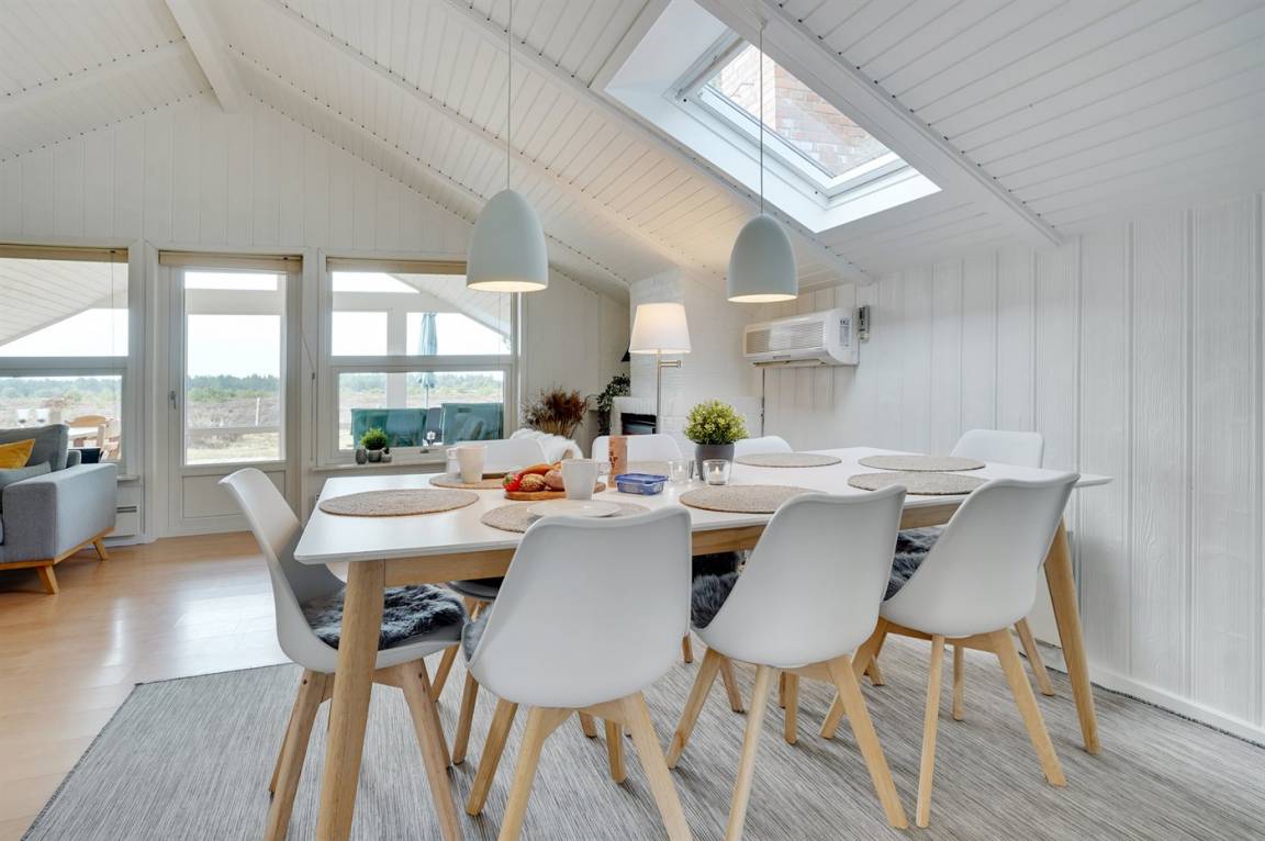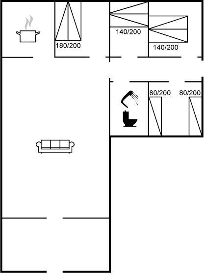 Das ca. 100 m² große Haus wurde im Winter 2021/2022 teilweise renoviert und 2023 wurde eine neue Küche eingebaut. Das Haus tritt hell und einladend hervor. Das Haus verfügt über ganze 4 Schlafzimmer, ein großes, geräumiges Wohnzimmer mit einer Sofagruppe und einem Essbereich in Anschluss an die offene Küche. Die beiden Sessel vor dem Kaminofen laden dazu ein, das knisternde Feuer zu genießen. Die Küche ist mit 1 Kühlschrank und Tiefkühlmöglichkeit mit 84 Liter Nutzinhalt, 4 Induktions-Kochzonen, Backofen, Mikrowelle und Geschirrspülmaschine ausgestattet.