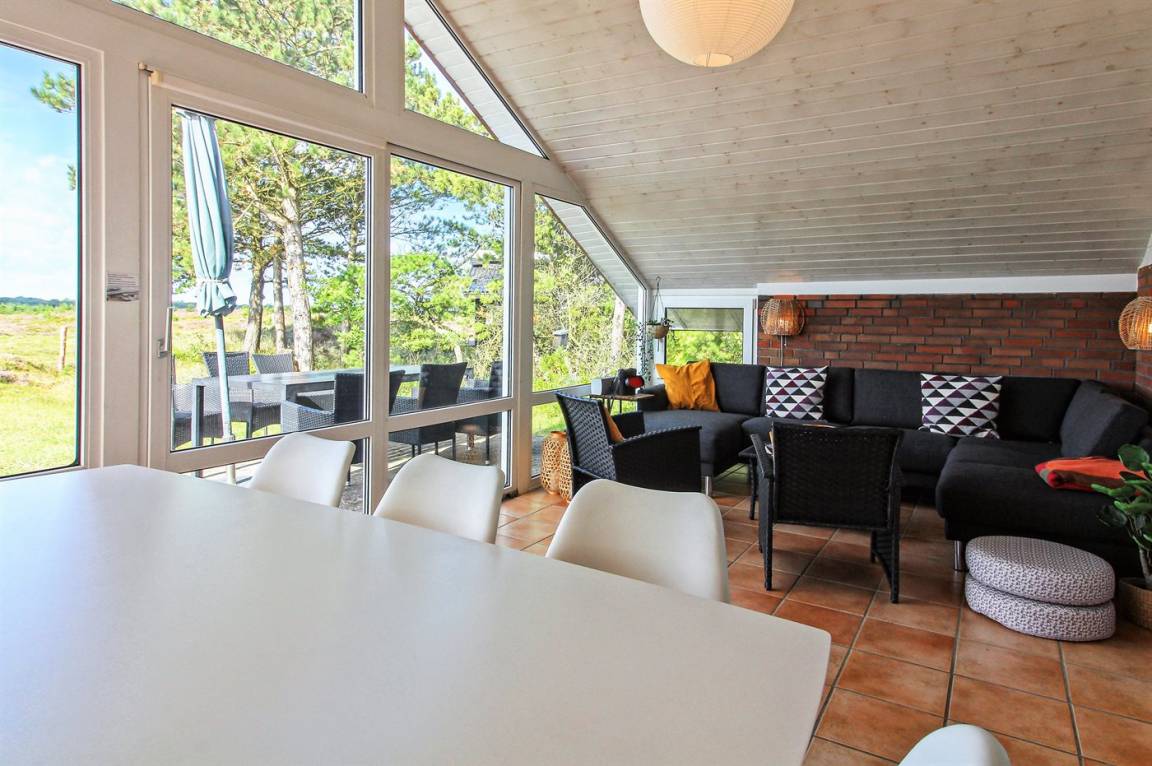 Auch an Kinder ist im Ferienhaus gedacht. So gibt es eine Spielküche mit Spielteppich und Spielzeug, 1 Kinderstuhl sowie ein faltbares Kinderbett mit einer guten, stabilen Matratze. Vom Wohnzimmer gelangt man in den geräumigen Wintergarten mit einer großen Glasfront Richtung Süden, die Aussicht auf die Heidelandschaft bietet, wo man Hochlandrinder, Rotwild, Raubvögel, Fasane und Hasen erleben kann. Hier können Sie gemütlich ein Glas Wein auf dem Sofa trinken oder Brettspiele am gesonderten Esstisch spielen. Nach Einbruch der Dunkelheit können Sie die unzähligen Sterne am Nachthimmel ohne störende Lichtverschmutzung bewundern.