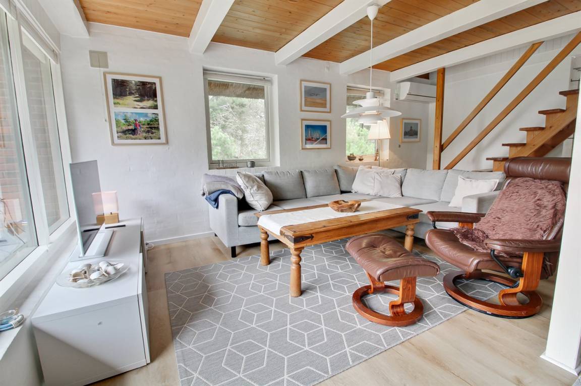 Ferienhaus aus Stein in 2 Etagen, 1974 gebaut und 2016 letztens renoviert, auf einem schönen Naturgrundstück gelegen. Zum Haus gehört eine abgeschirmte Terrasse mit Gartenmöbeln sowie 1 Balkon im Obergeschoss des Hauses. Nettes Badezimmer mit Fußbodenheizung und Duschnische. Die Küche ist mit dem Wohnzimmer kombiniert und u. a. mit Geschirrspüler und Mikrowelle ausgestattet. Das Wohnzimmer enthält Kaminofen, Radio und DVD-Spieler. Die Schlafplätze verteilen sich auf 3 Schlafzimmer; 2 mit Doppelbett im Obergeschoss und 1 mit Etagenbett im Erdgeschoss. Von dem einen Schlafzimmer haben Sie Ausgang zum Balkon, von dem aus Sie eine herrliche Aussicht über das Gebiet haben. Kinderbett und Kinderhochstuhl vorhanden. An weiterer Ausstattung können Tiefkühlgerät sowie Waschmaschine und Wäschetrockner (befinden sich im Geräteraum) erwähnt werden und es ist eine energiegerechte Wärmepumpe installiert. Das Haus liegt nur 375 m von einem Golfplatz entfernt.